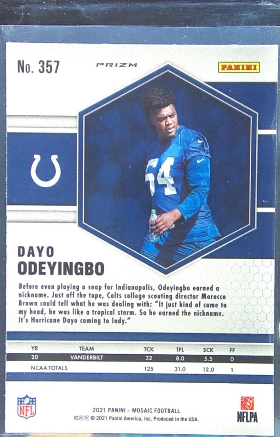 2021 Mosaic Dayo Odeyingbo Prizm Green RC #357 Colts