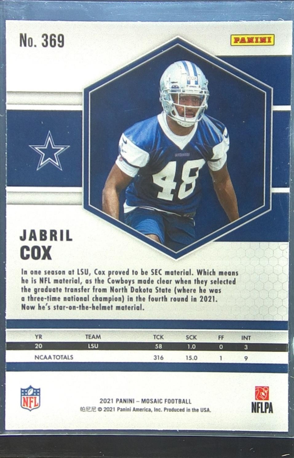 2021 Mosaic Jabril Cox RC #369 Cowboys
