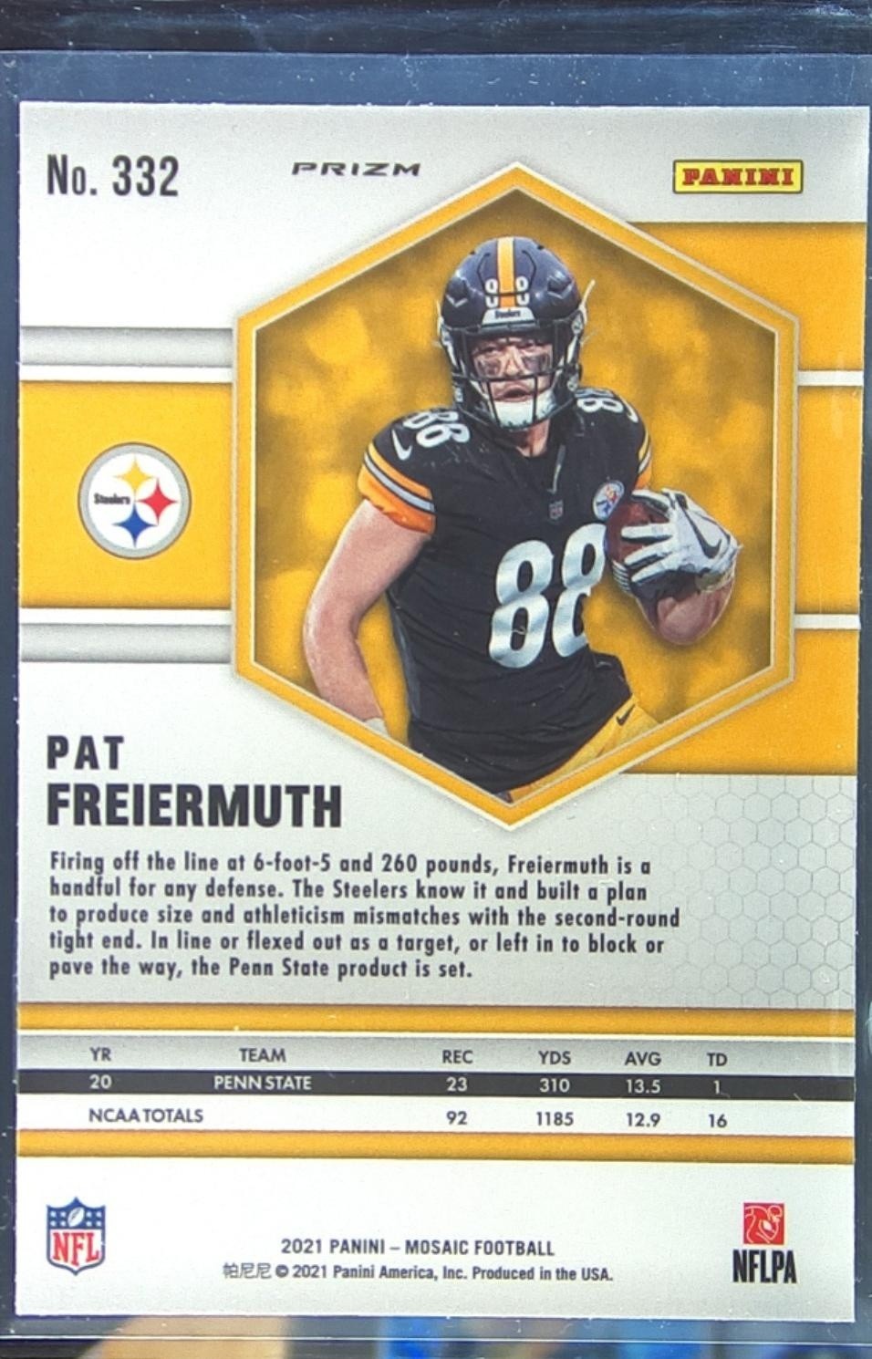 2021 Mosaic Pat Freiermuth Prizm Reactive Blue RC #332 Steelers