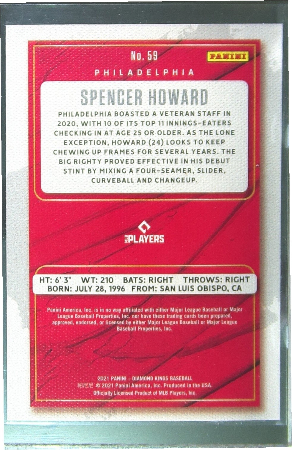 2021 Panini Diamond Kings Spencer Howard Artist's Proof Blue RC #59 Phillies