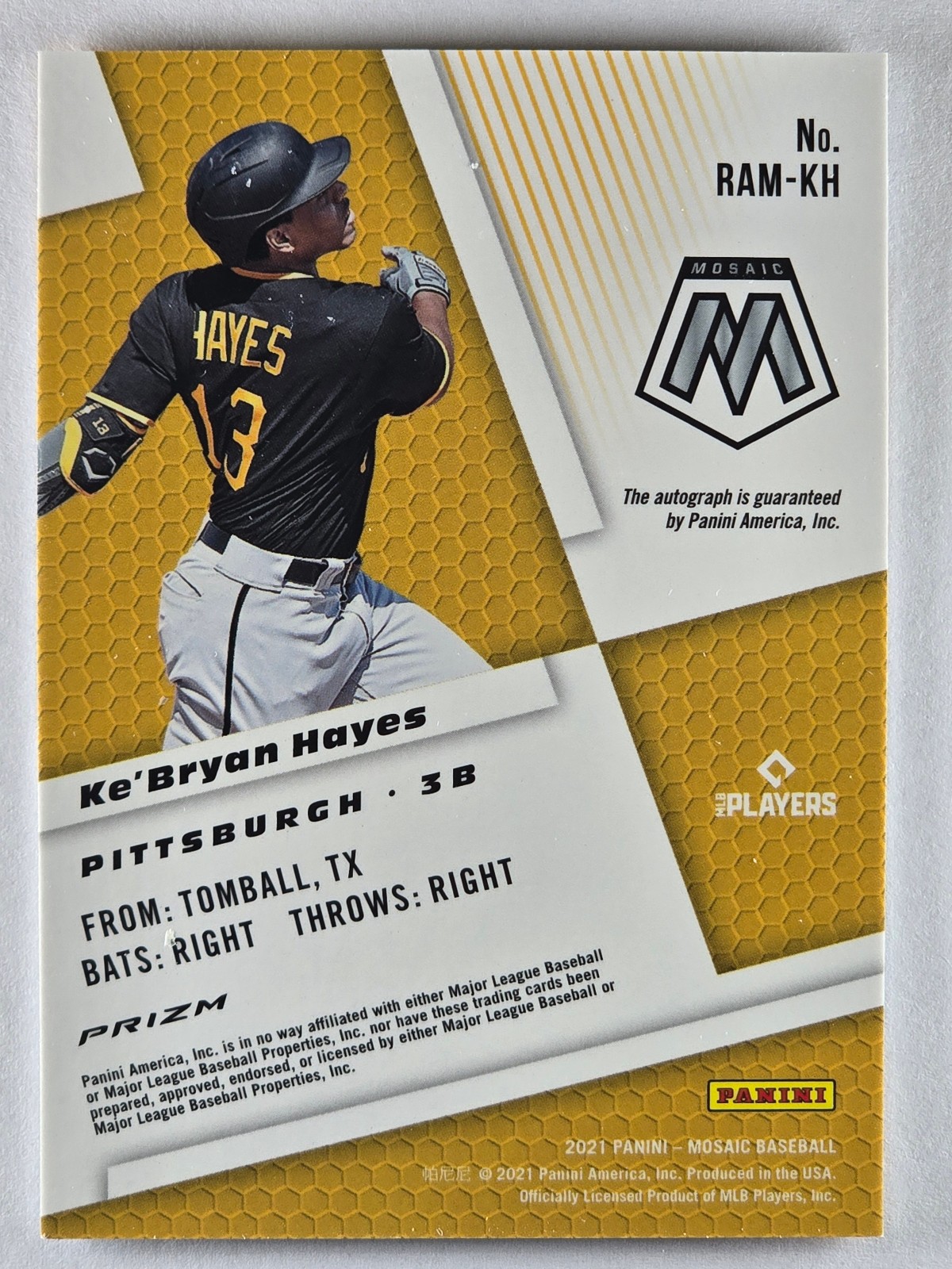 2021 Panini Mosaic Ke'bryan Hayes Rookie Auto Pittsburgh Pirates #RAM-KH