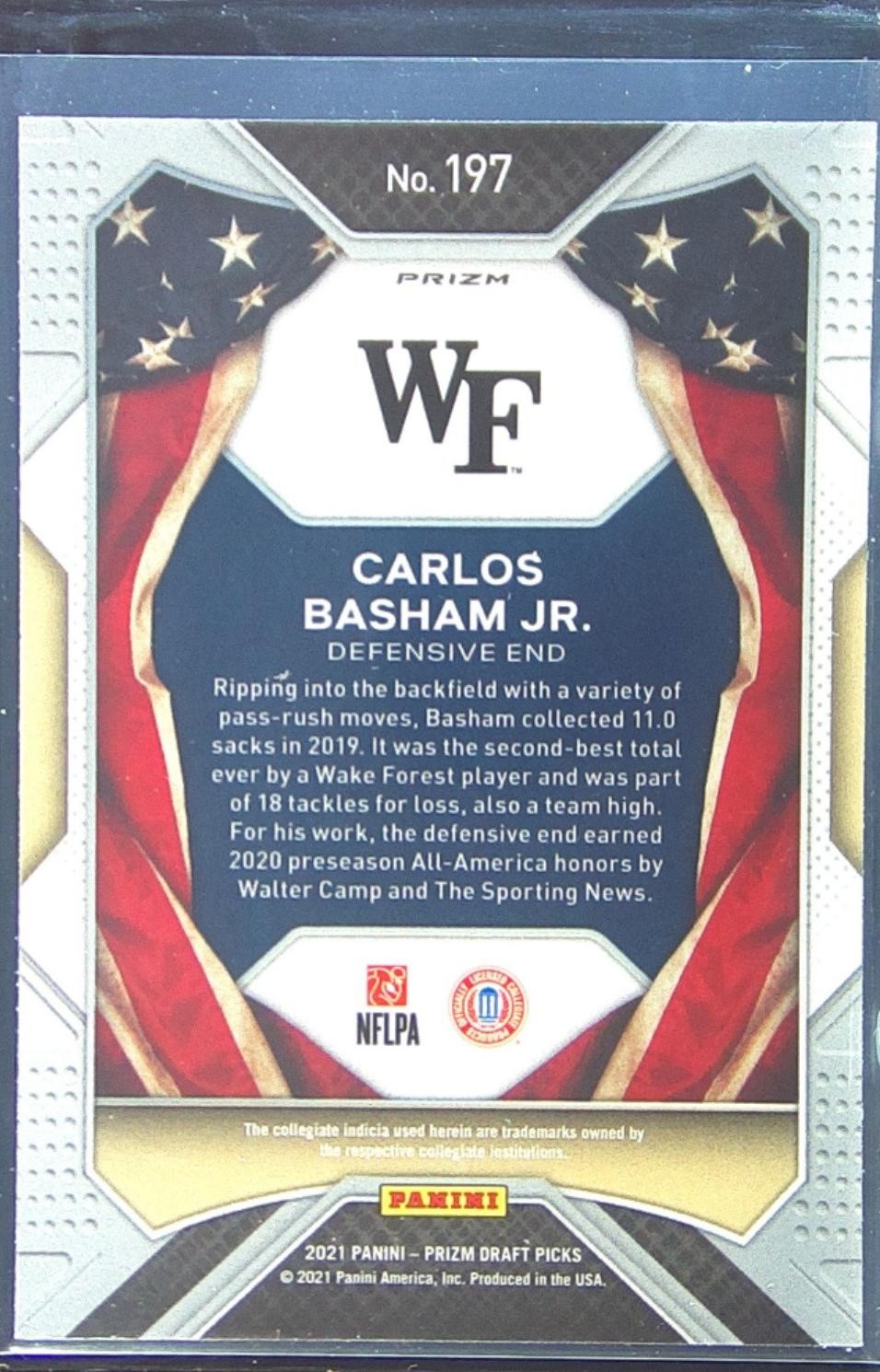 2021 Prizm Draft Picks Carlos Basham Jr. Purple Wave RC #197 Deacons