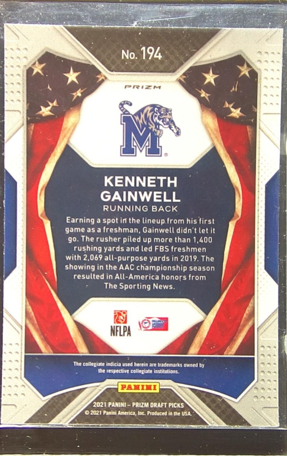 2021 Prizm Draft Picks Kenneth Gainwell RC Red White and Blue #194 Tigers