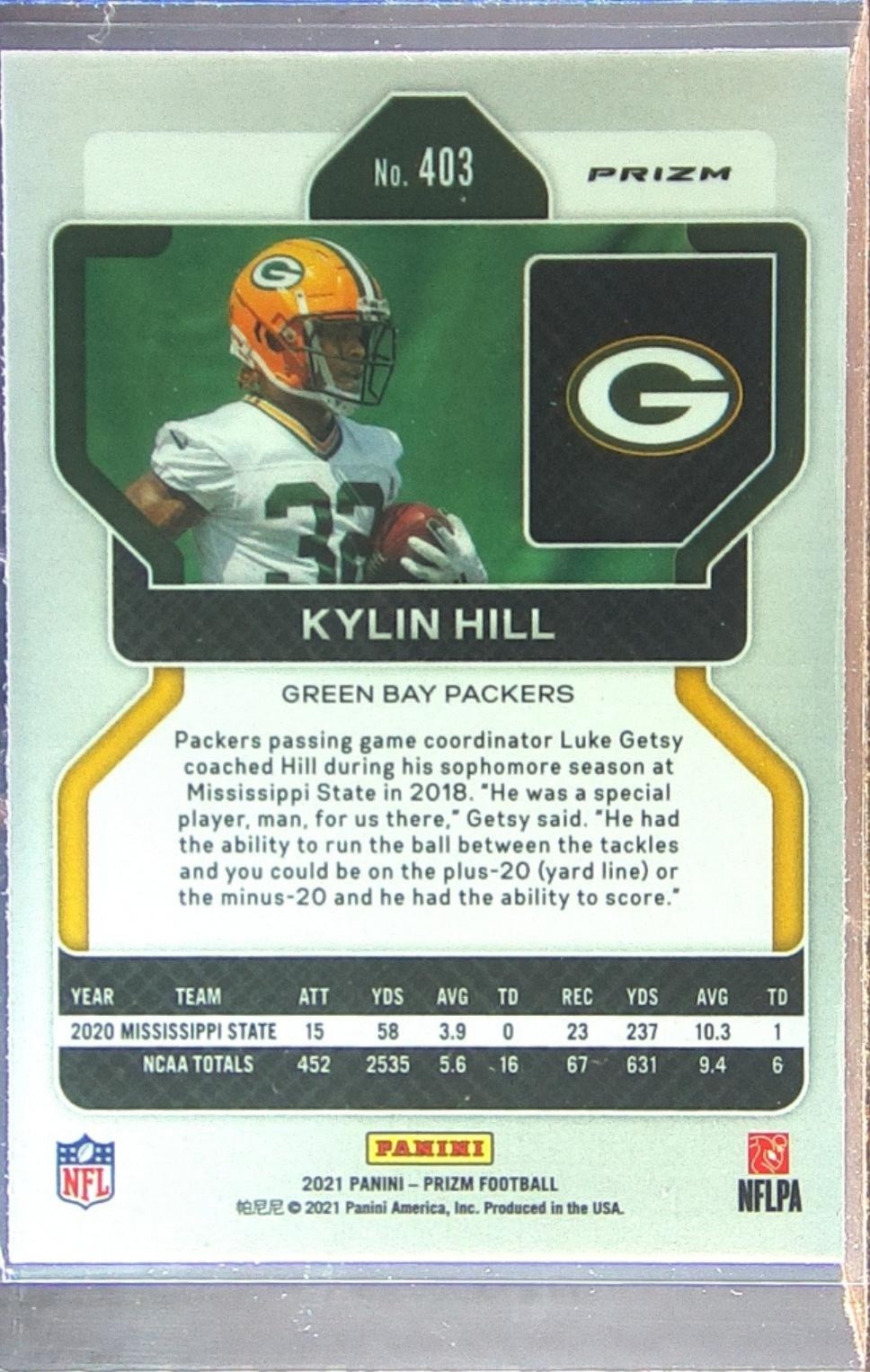 2021 Prizm Kylin Hill Orange Lazers RC #403 Packers