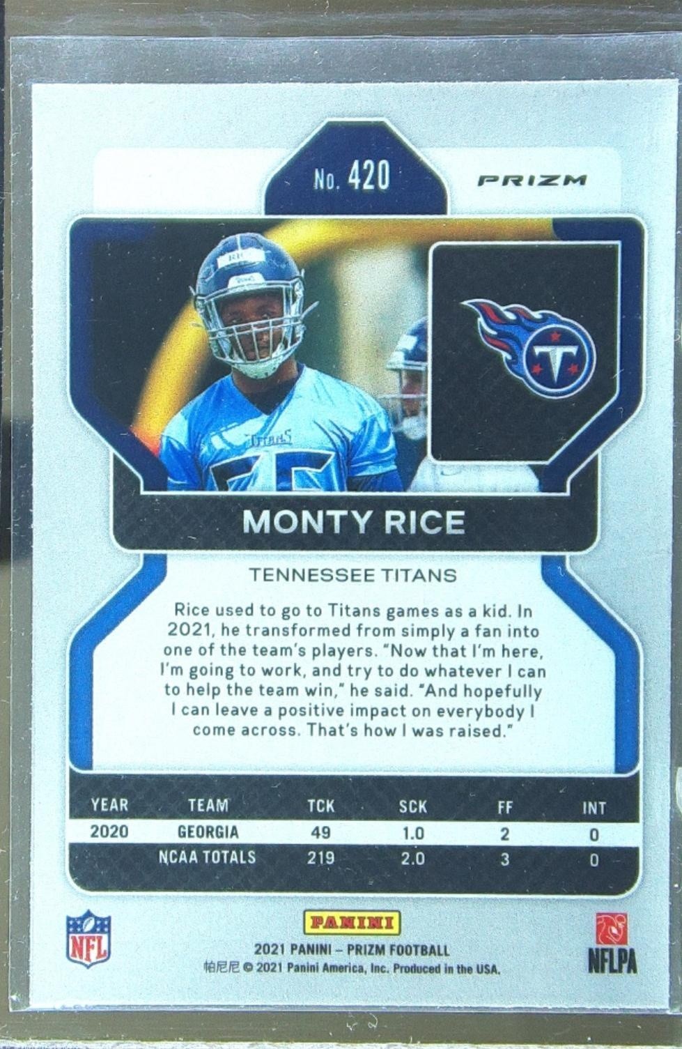 2021 Prizm Monty Rice Red White and Blue RC #420 Titans