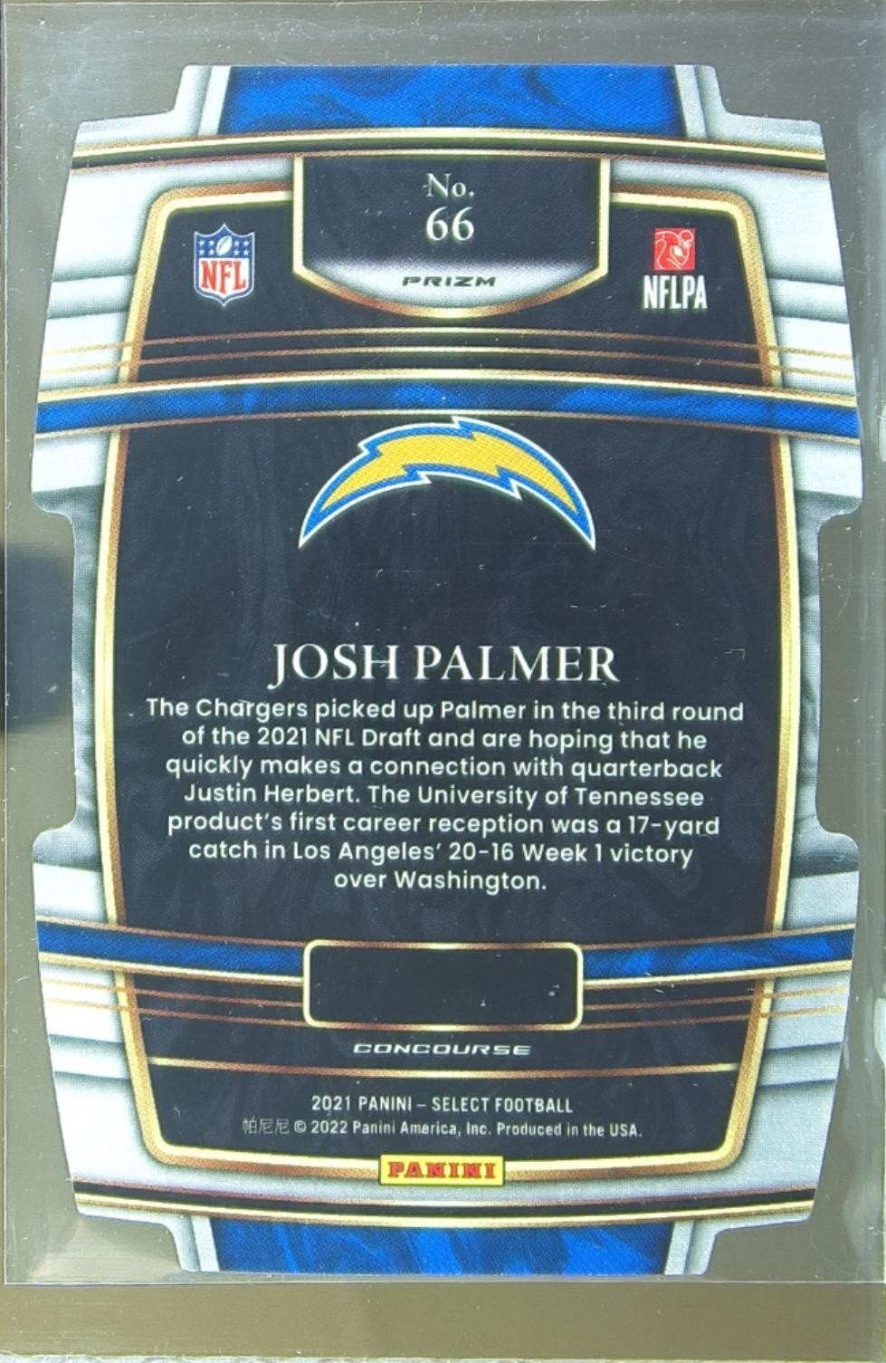 2021 Select Josh Palmer Red and Yellow Prizm Die Cut RC #66 Chargers