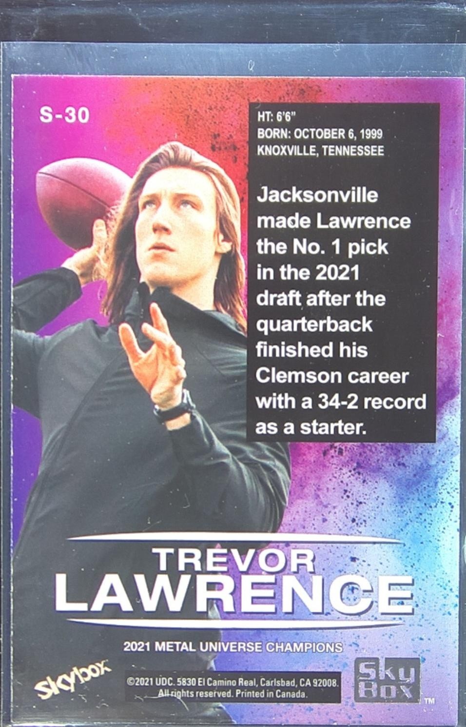 2021 SkyBox Metal Universe Champions Trevor Lawrence #S-30 Skybox Premium