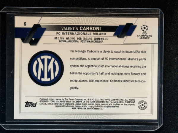 2022-23 Topps Chrome UEFA Carboni Black and White Ray Wave Rookie RC Inter #6