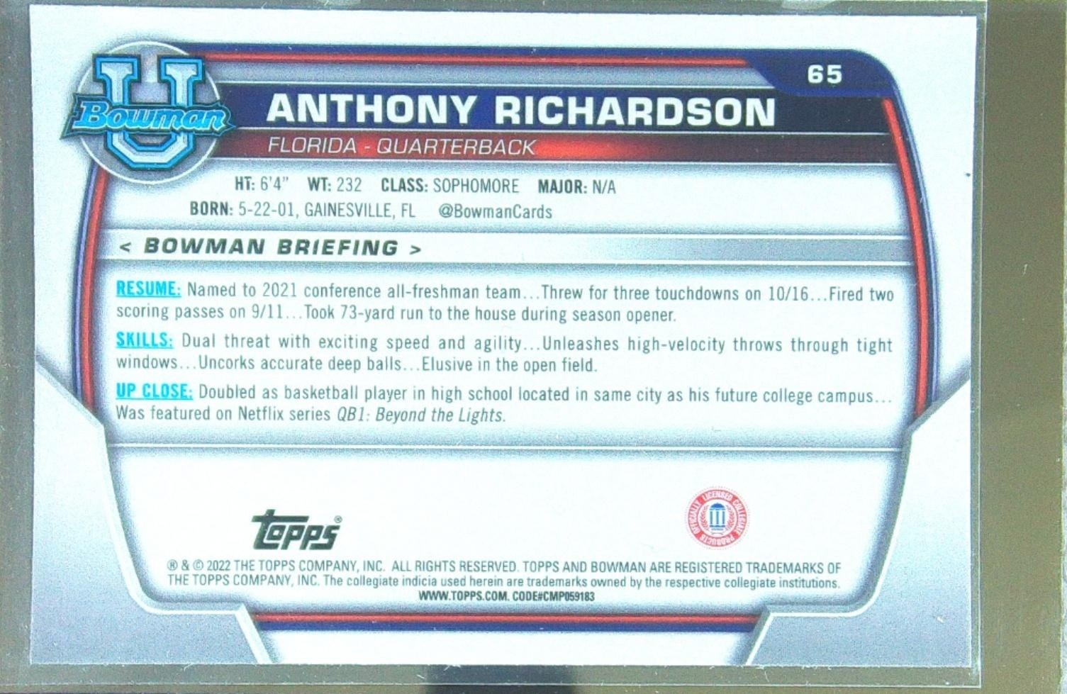2022 Bowman University Chrome Anthony Richardson Pink Refractor #65 Gators