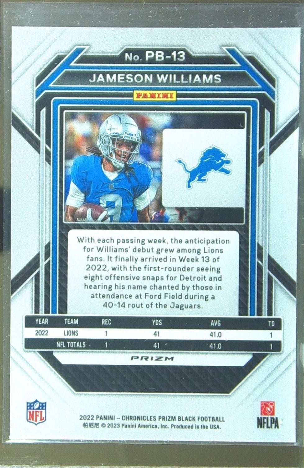 2022 Chronicles Jameson Williams RC #PB-13 Lions Prizm Black Silver