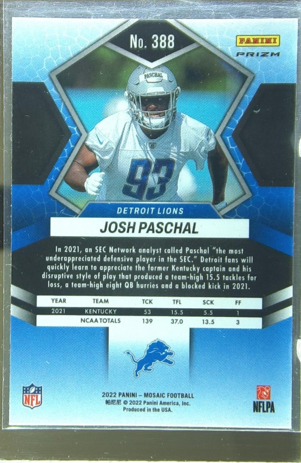 2022 Mosaic Josh Paschal Mosaic Reactive Orange RC #388 Lions