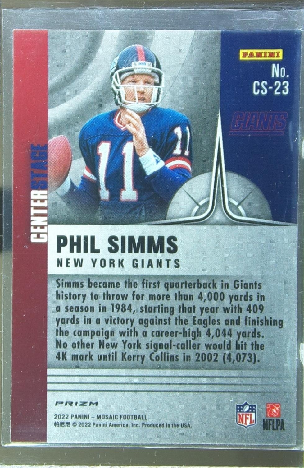 2022 Mosaic Phil Simms #CS-23 Giants Centerstage Silver