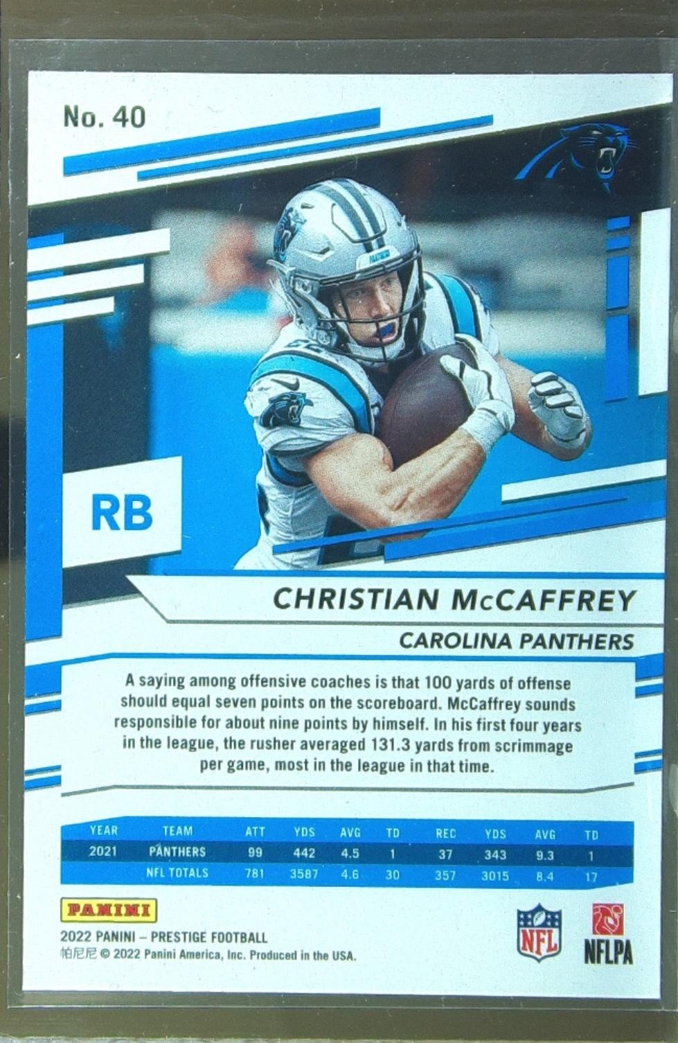 2022 Prestige Christian McCaffrey Xtra Points Sunburst #40 Panthers