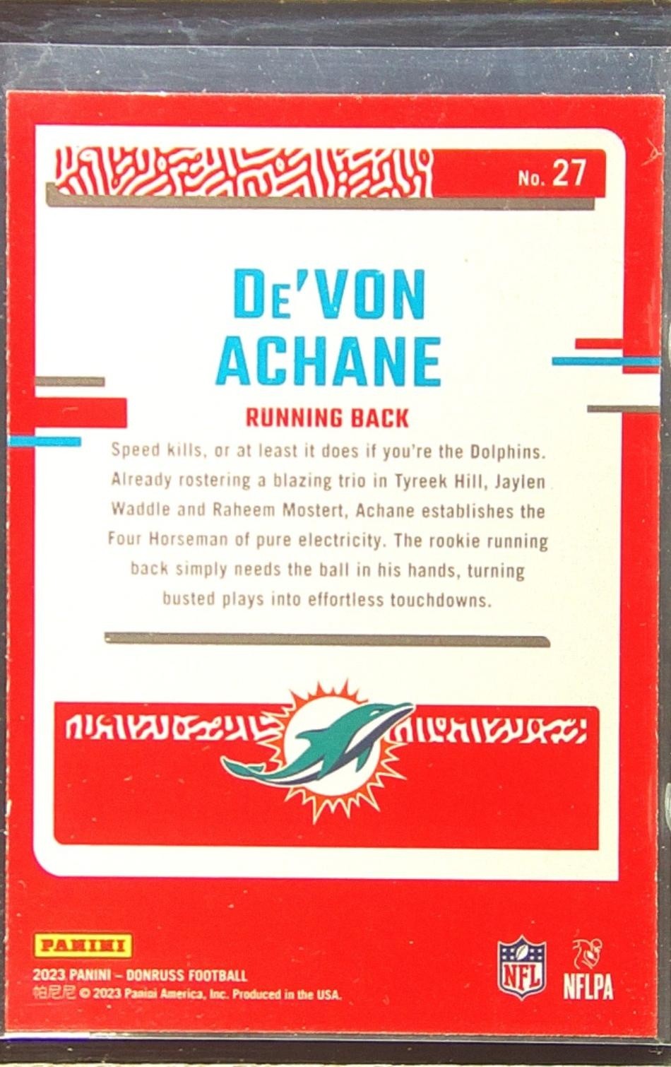 2023 Donruss De'Von Achane RC #27 Dolphins The Rookies