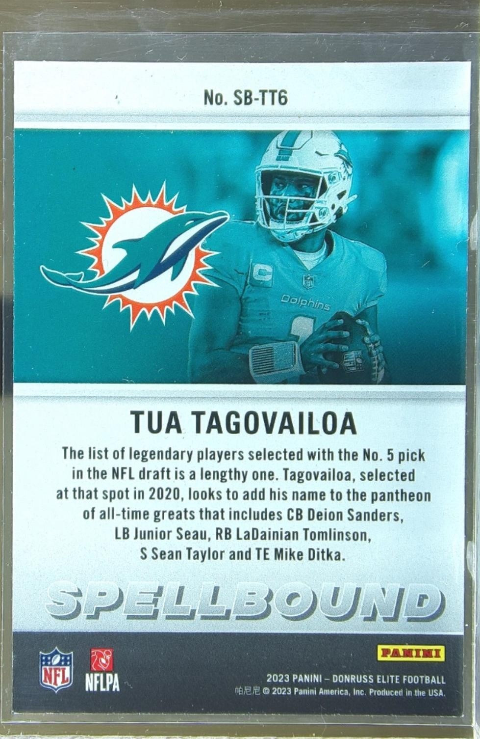 2023 Donruss Elite Tua Tagovailoa #SB-TT6 Dolphins Spellbound Green