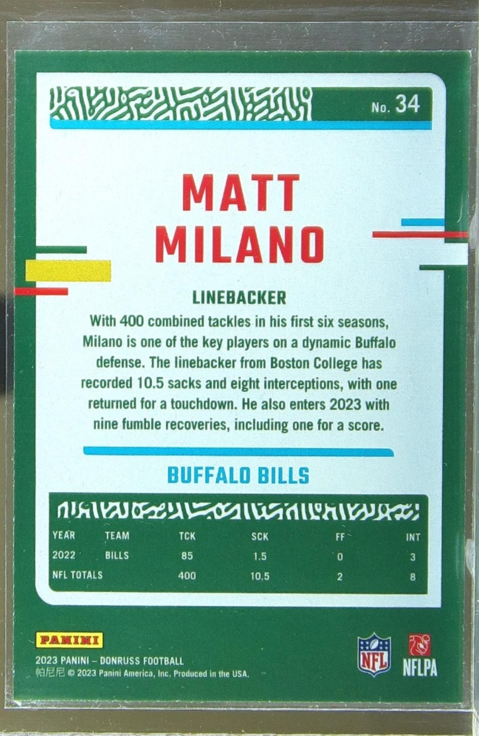 2023 Donruss Matt Milano Press Proof Blue #34 Bills
