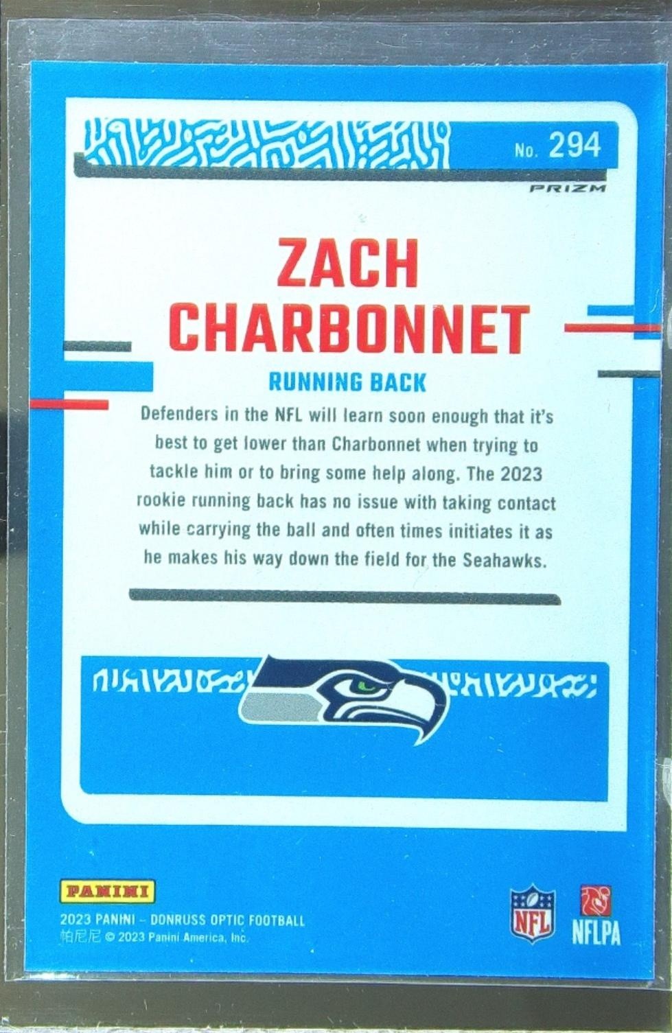 2023 Donruss Optic Zach Charbonnet Purple Shock RC #294 Seahawks