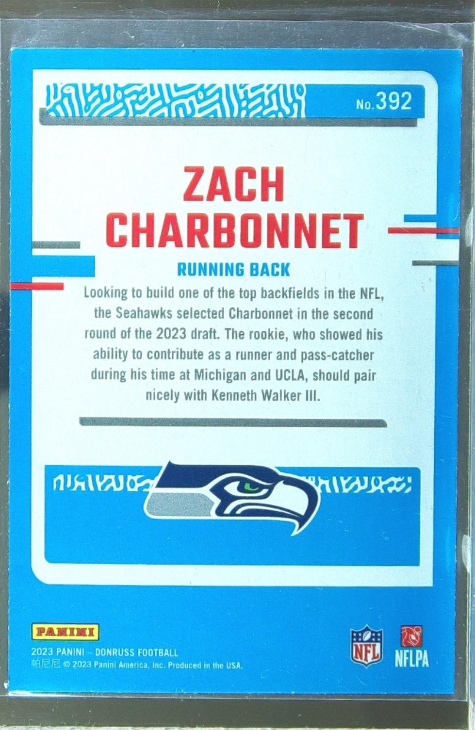 2023 Donruss Zach Charbonnet Press Proof Blue RC #392 Seahawks