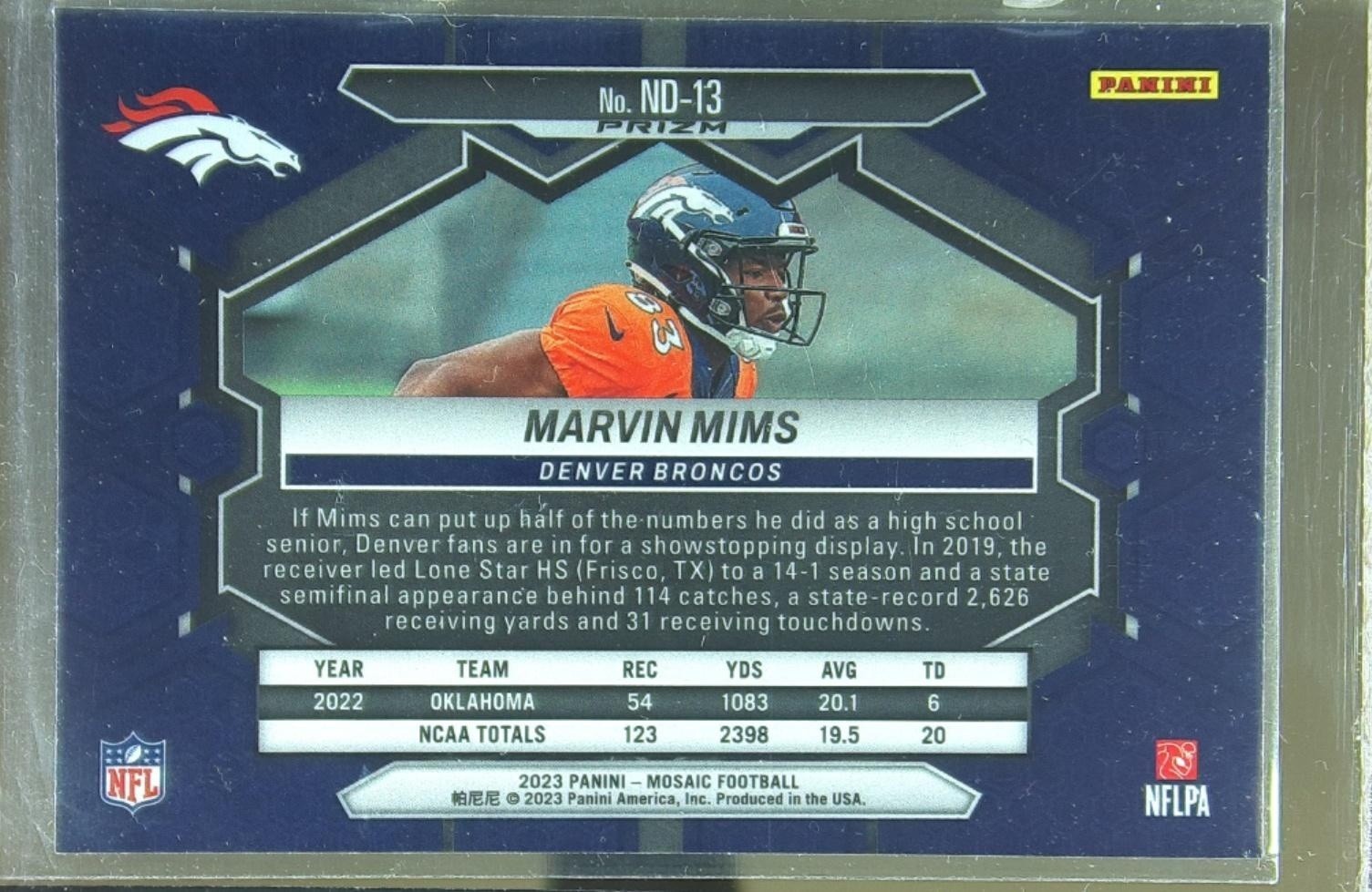 2023 Mosaic Marvin Mims Reactive Blue Mosaic RC #ND-13 Broncos