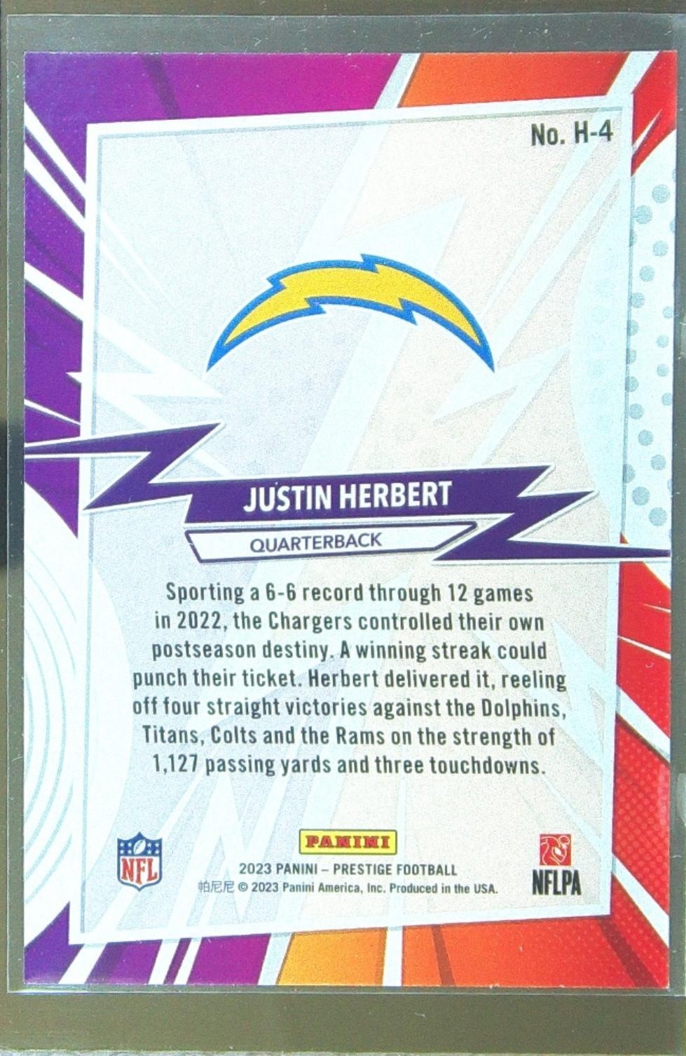 2023 Prestige Justin Herbert #H-4 Chargers Heroes