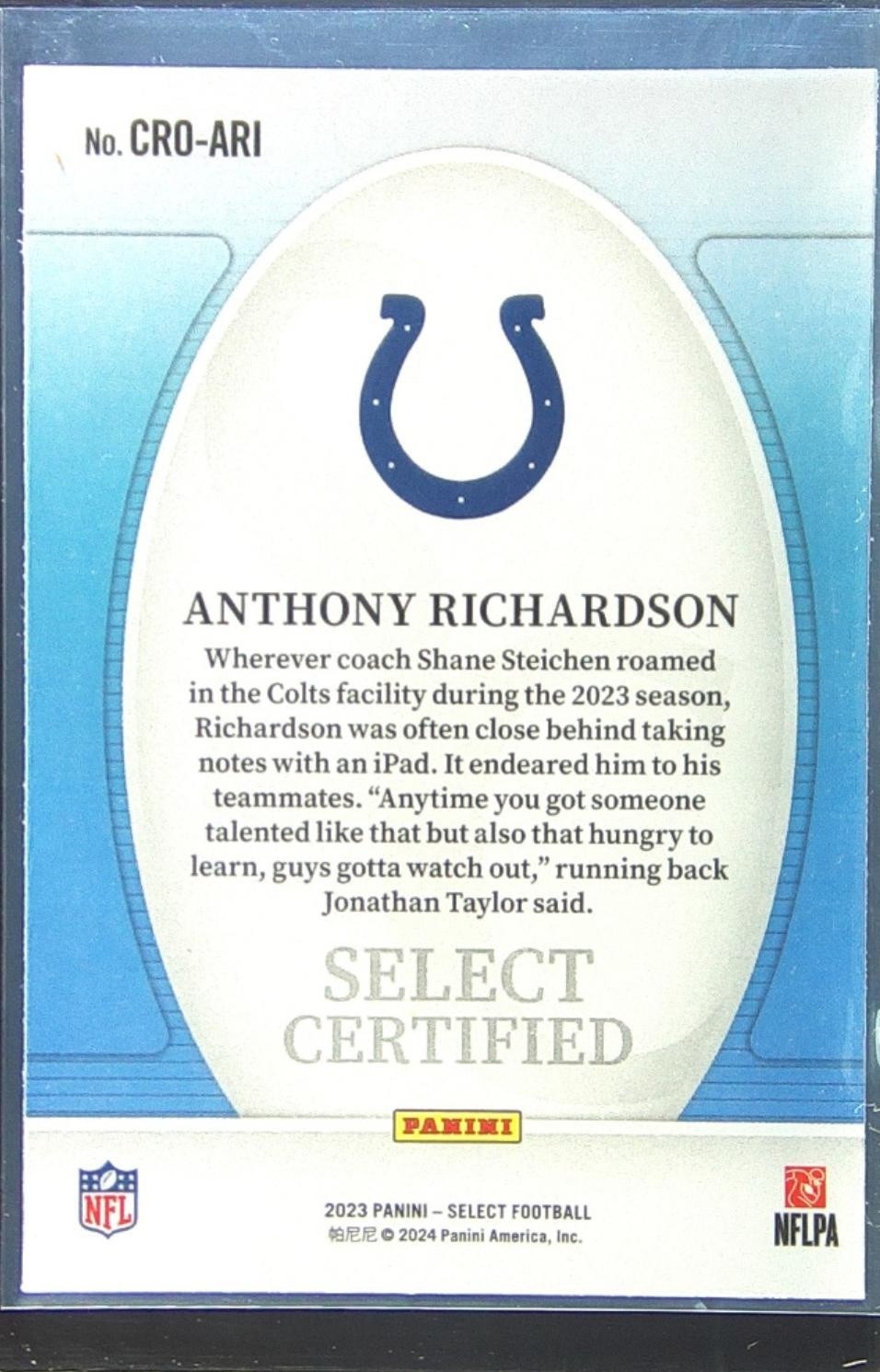 2023 Select Anthony Richardson RC #CRO-ARI Colts Select Certified Rookies