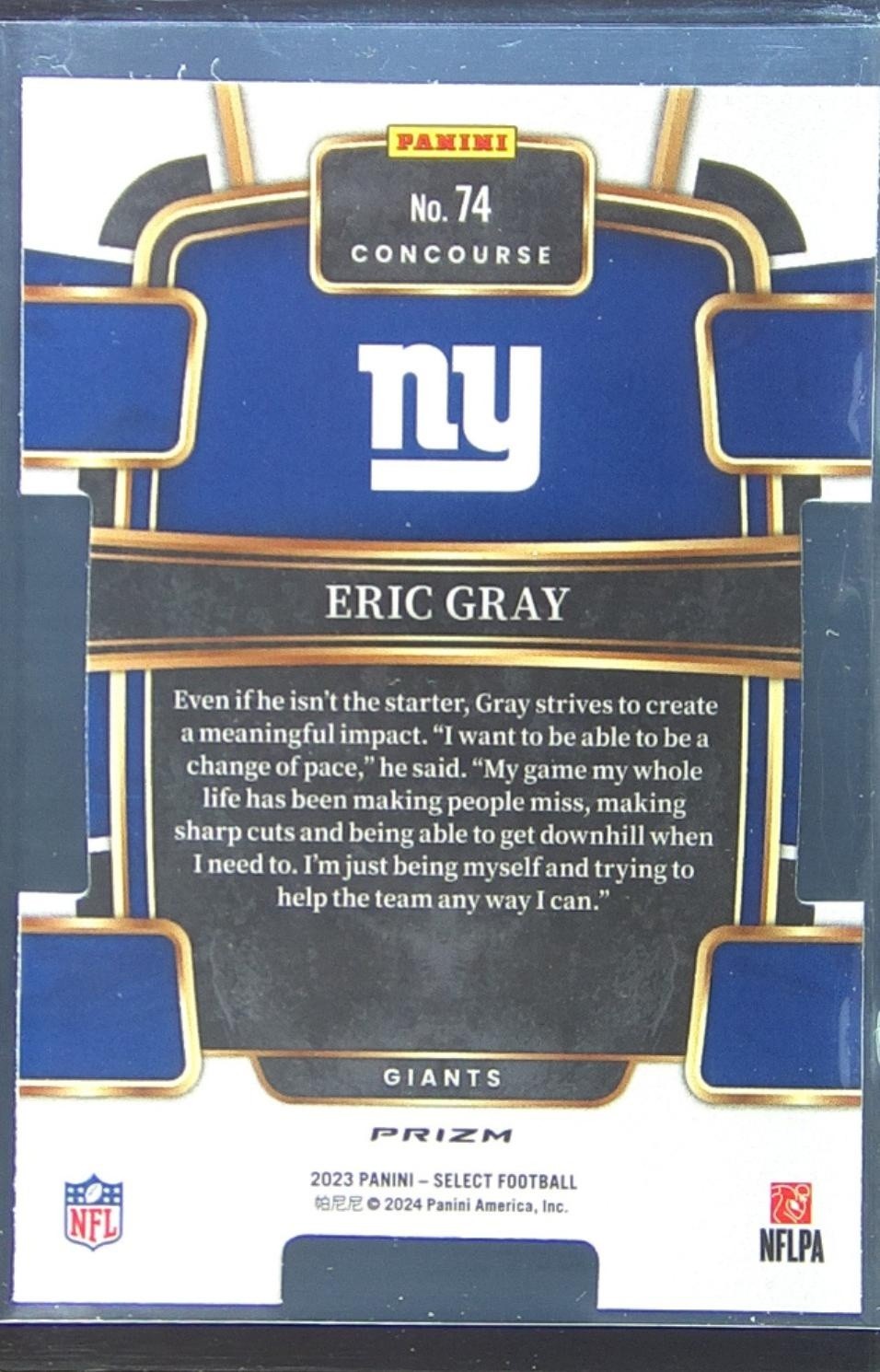 2023 Select Eric Gray Silver Prizms Die Cuts RC #74 Giants