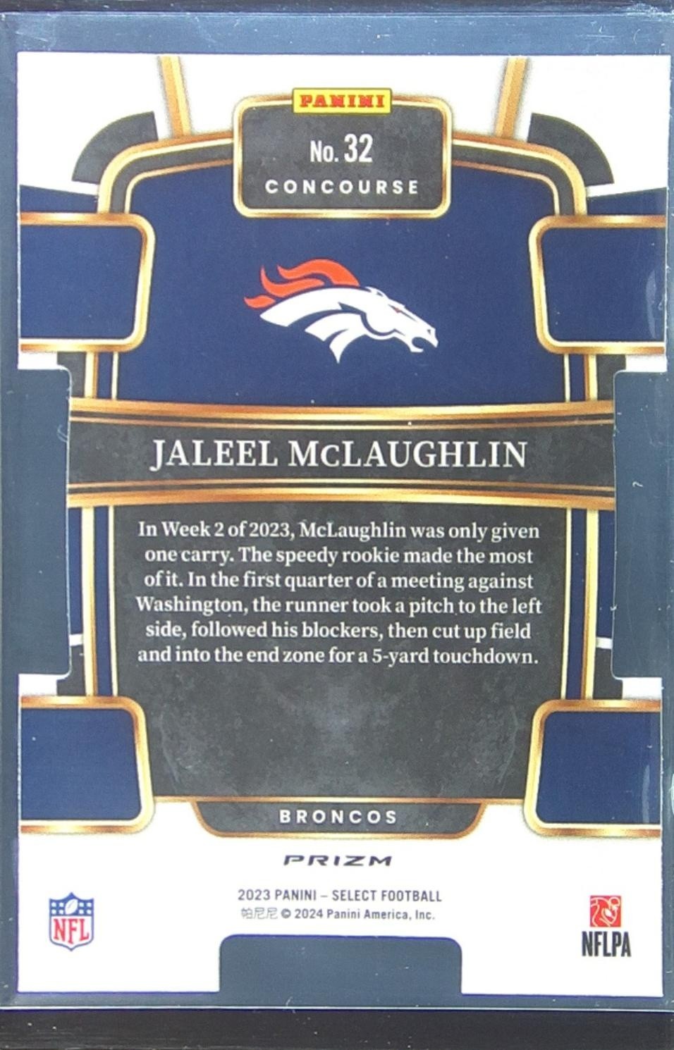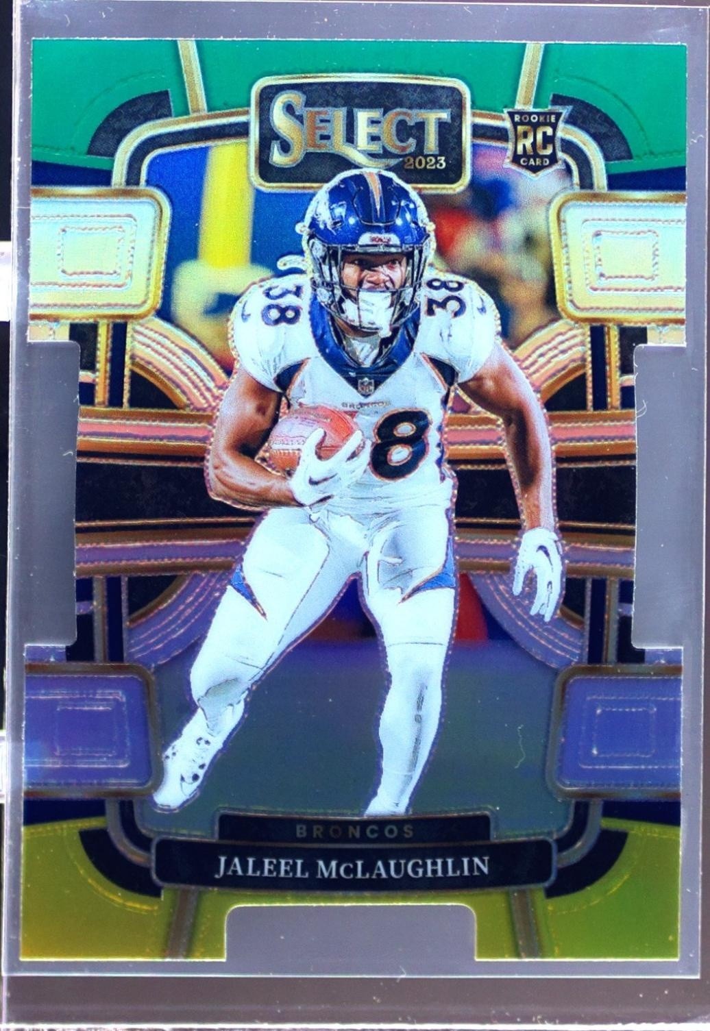 2023 Select Jaleel McLaughlin Green and Yellow Prizms Die Cuts RC #32 Broncos