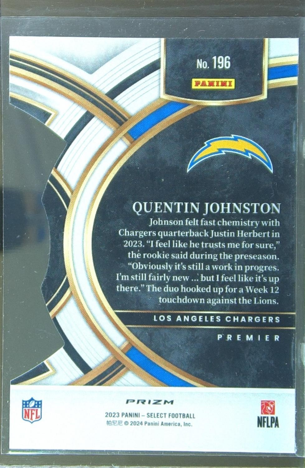 2023 Select Quentin Johnston Red and Yellow Prizms Die Cuts RC #196 Chargers