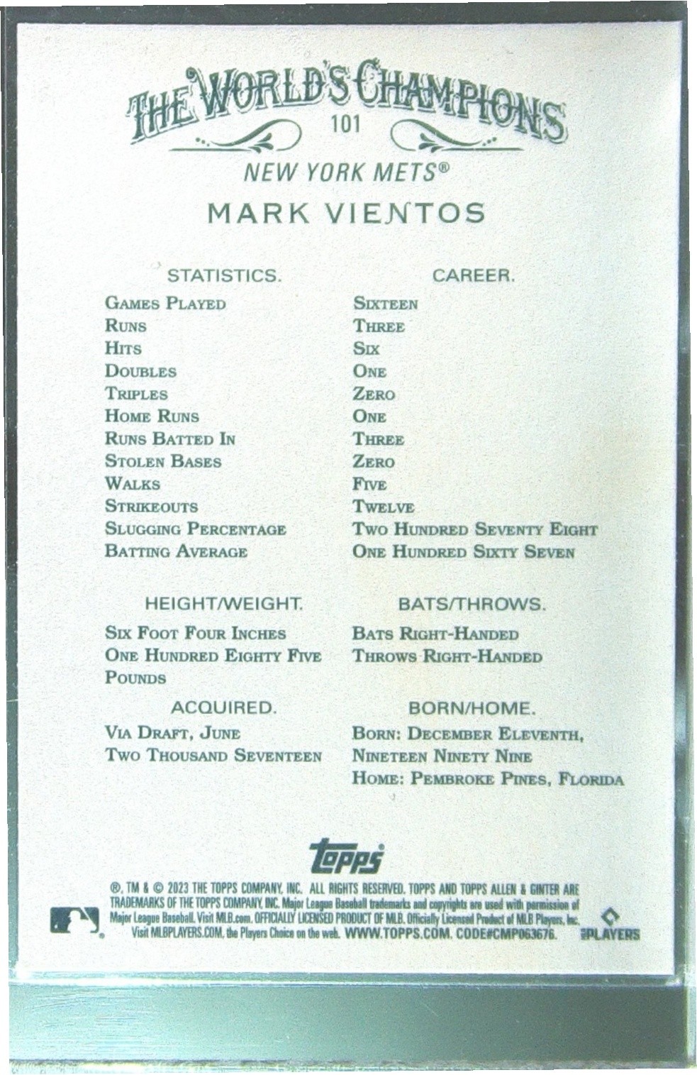 2023 Topps Allen & Ginter Mark Vientos RC #101 Mets