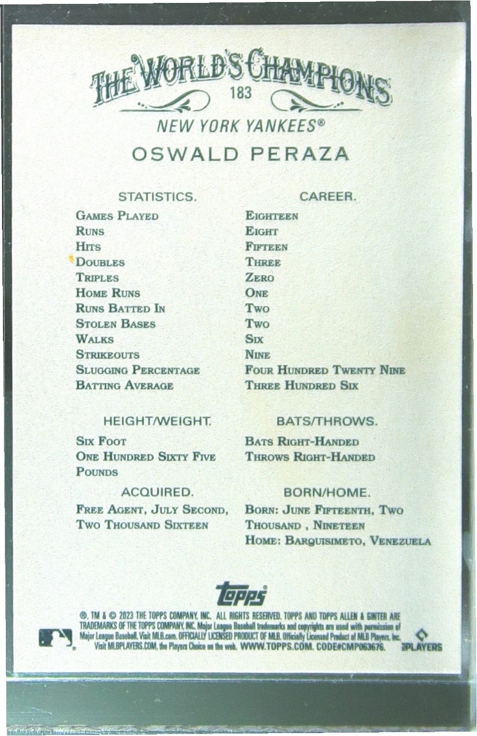 2023 Topps Allen & Ginter Oswald Peraza RC #183 Yankees