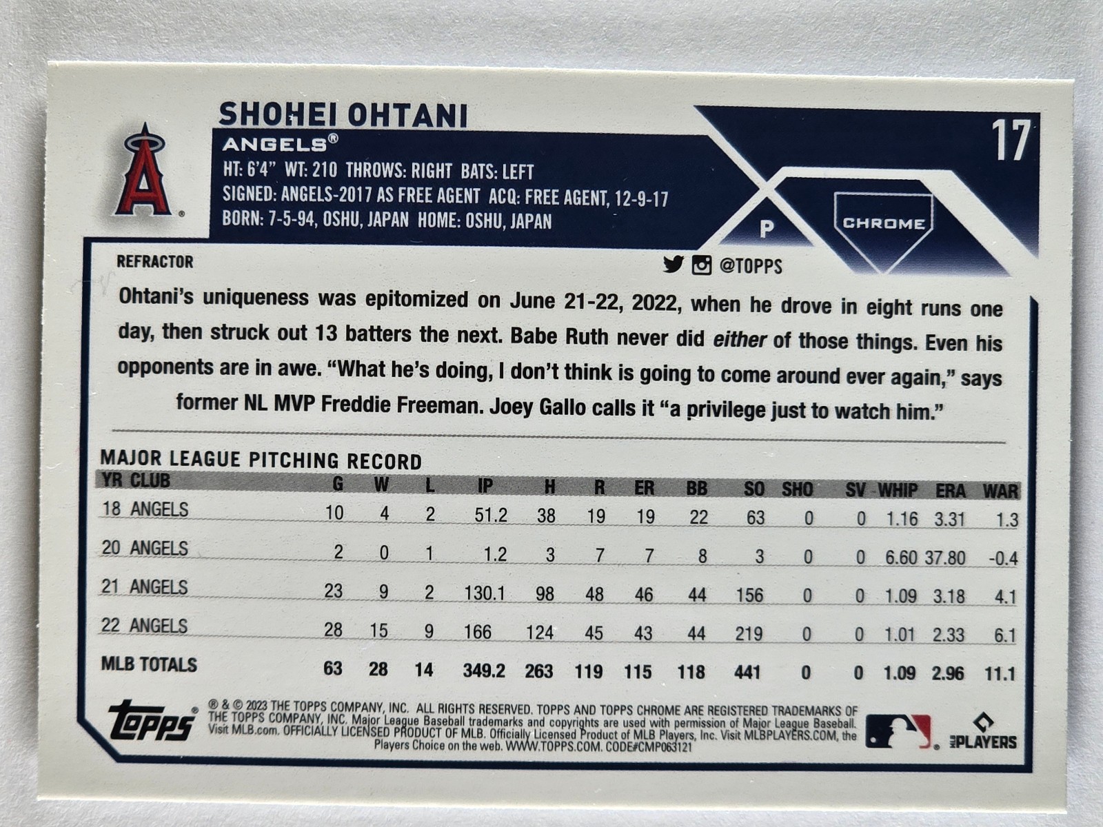 2023 Topps Chrome Shohei Ohtani #17 Angels