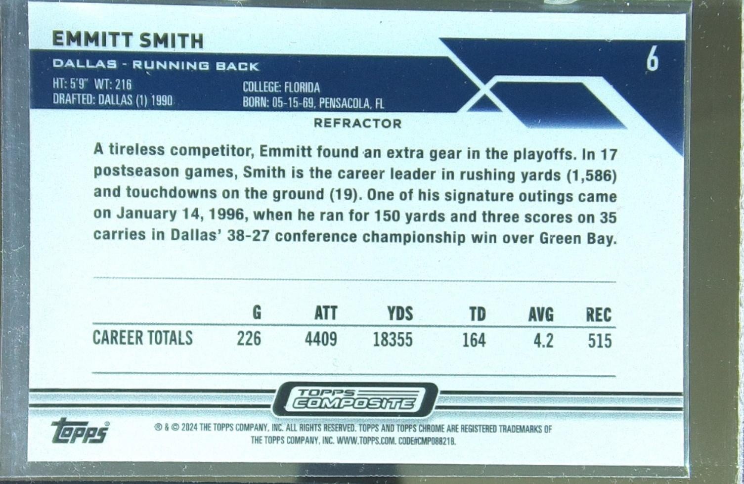 2023 Topps Composite Emmitt Smith Topps Chrome Prism Refractor #6 Cowboys