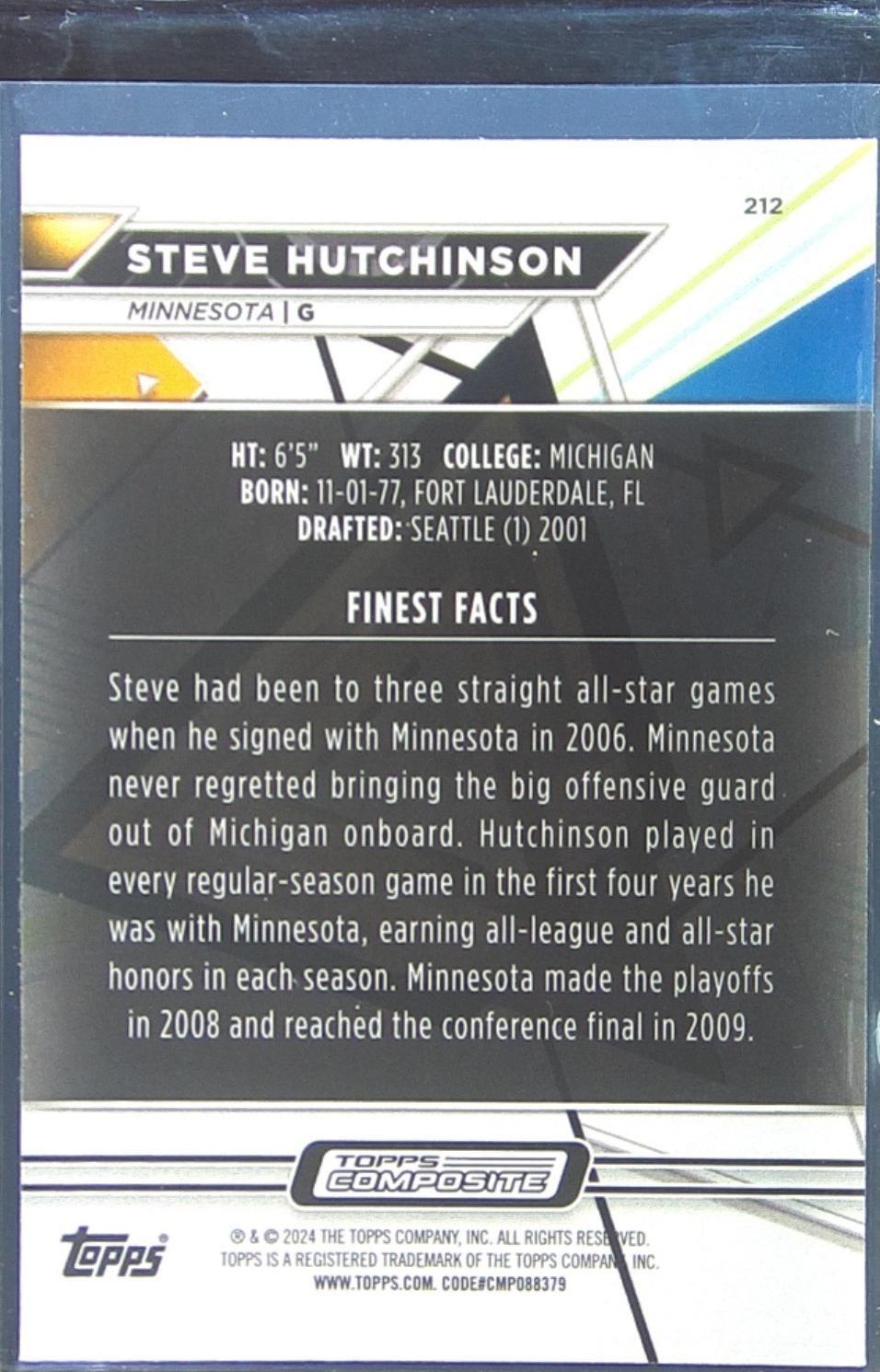 2023 Topps Composite Steve Hutchinson Finest Checkerboard Refractor #212 Vikings