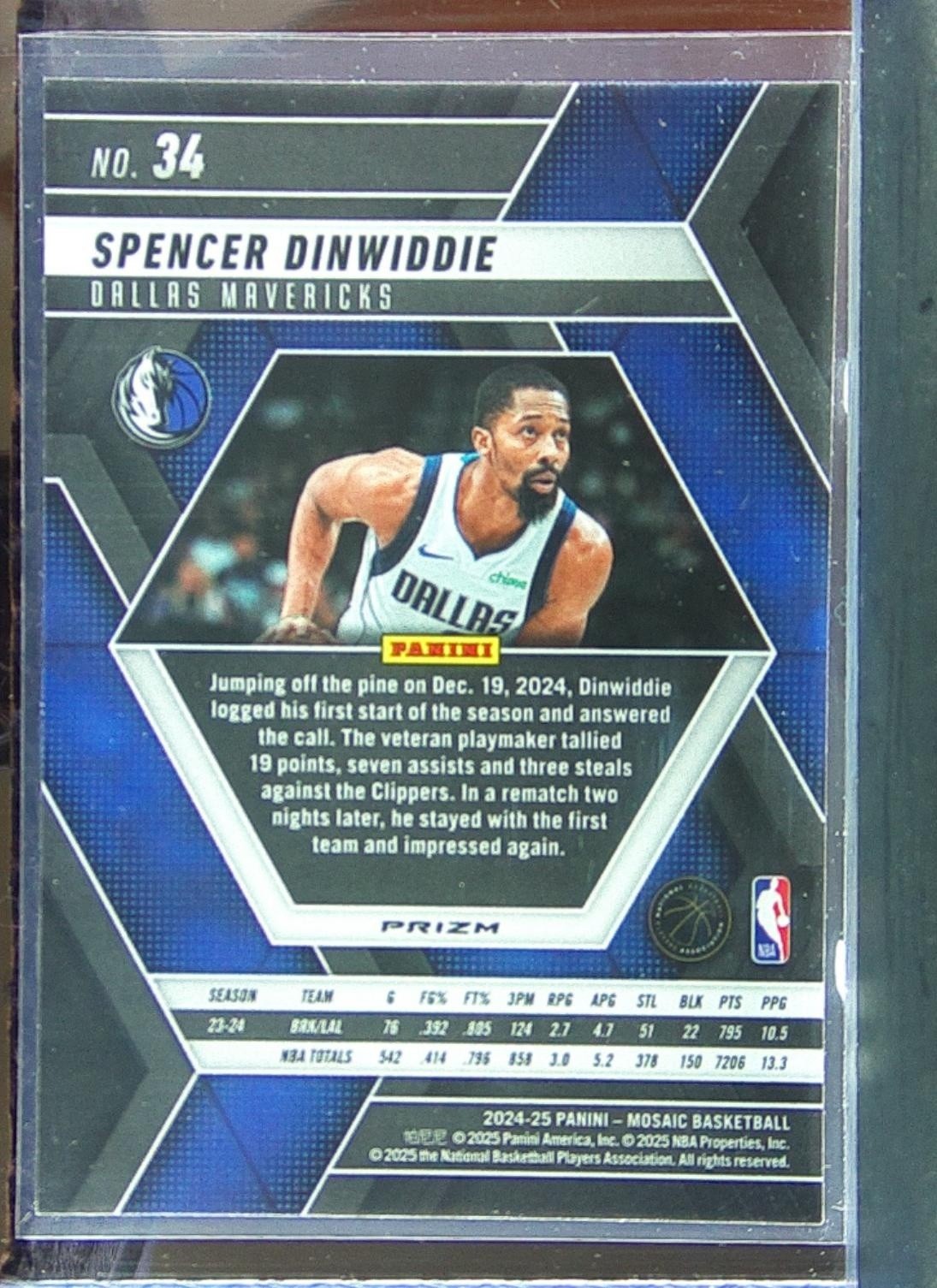2024-25 Mosaic Spencer Dinwiddie Reactive Blue Mosaic #34 Mavericks