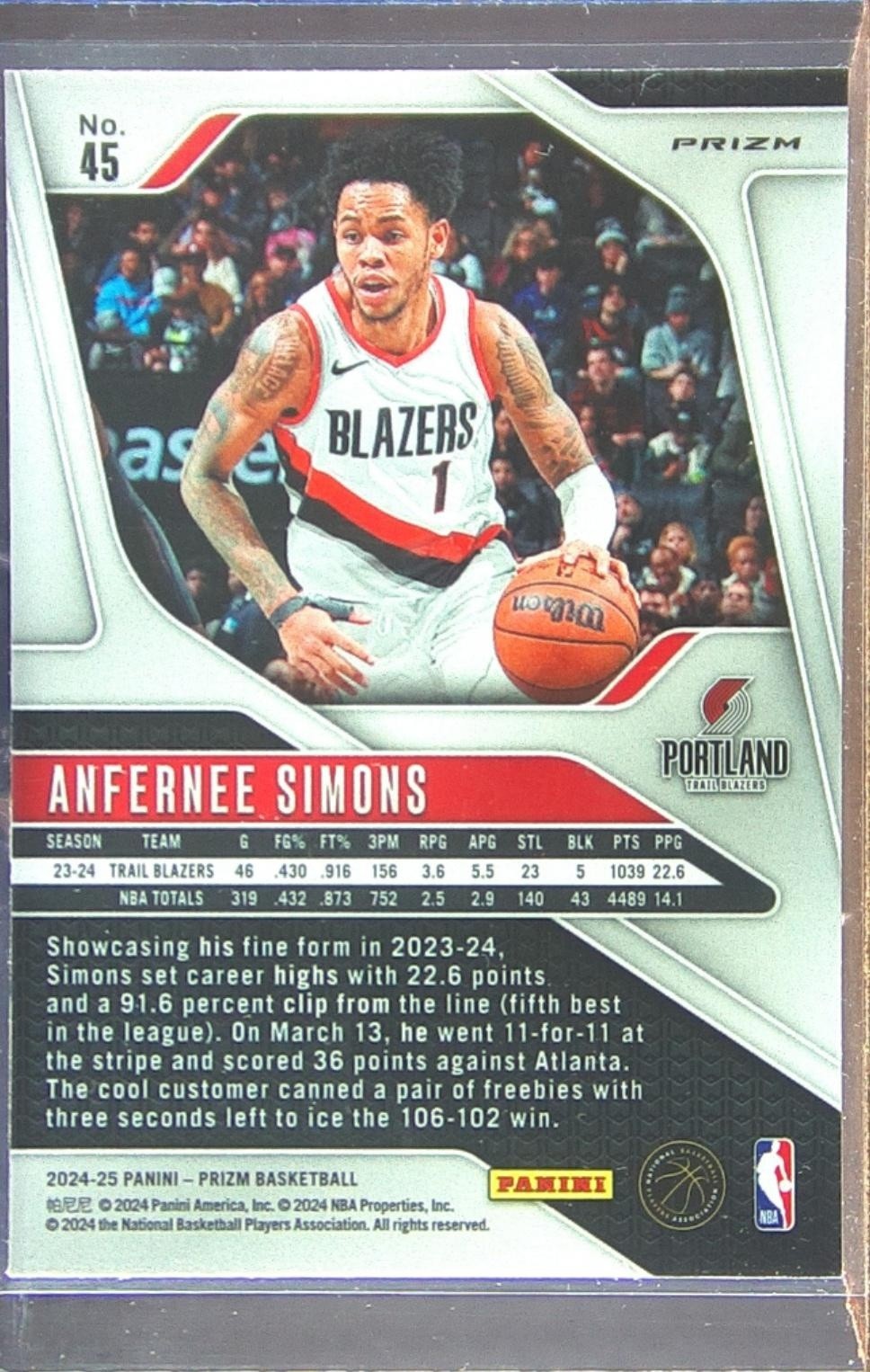 2024-25 Prizm Anfernee Simons Prizms Red Ice #45 Blazers