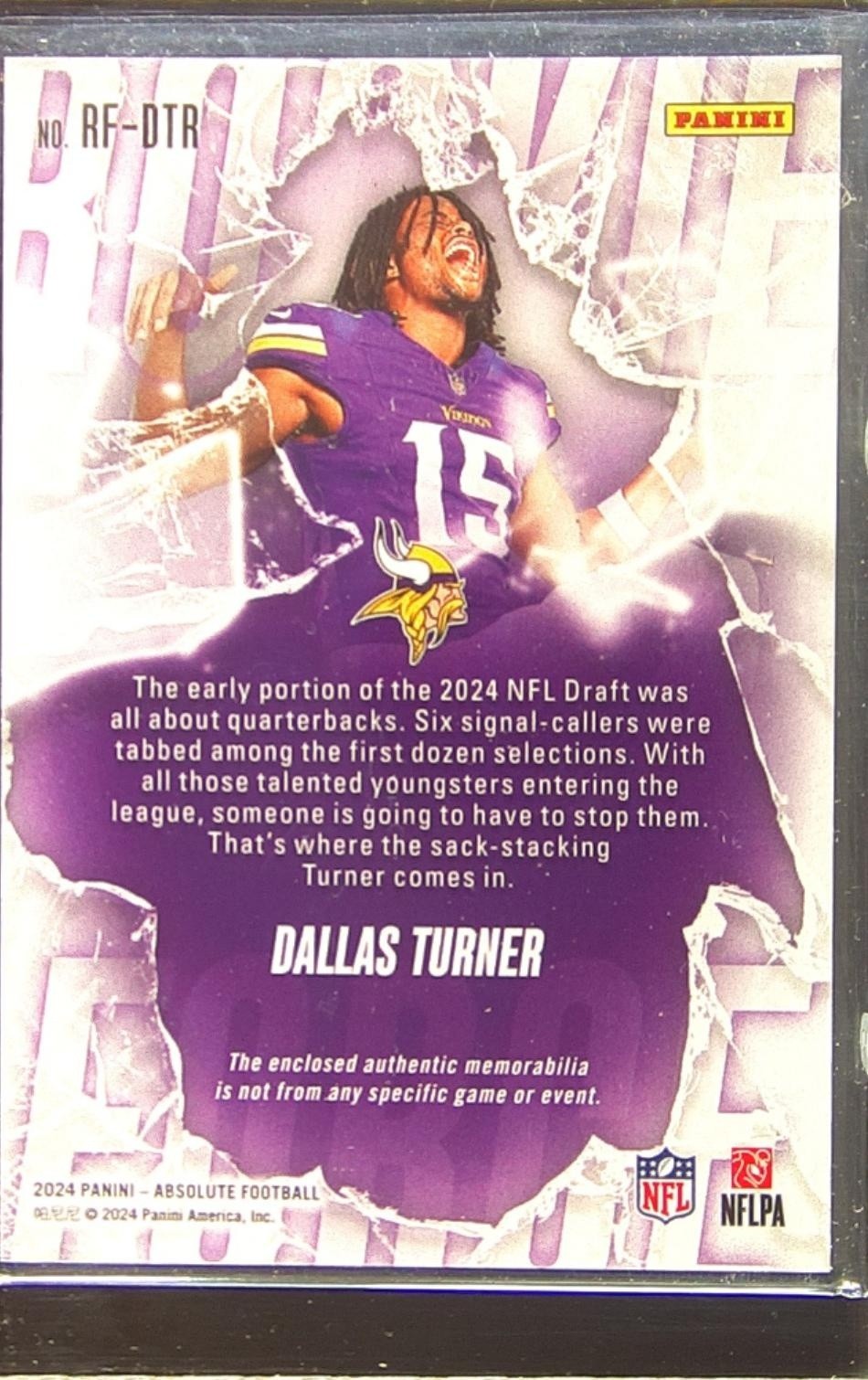 2024 Absolute Dallas Turner RC JSY #RF-DTR Vikings Rookie Force