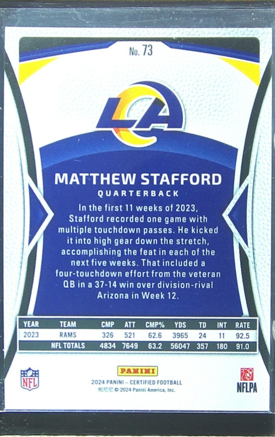 2024 Certified Matthew Stafford Mirror Orange /150 #73 Rams