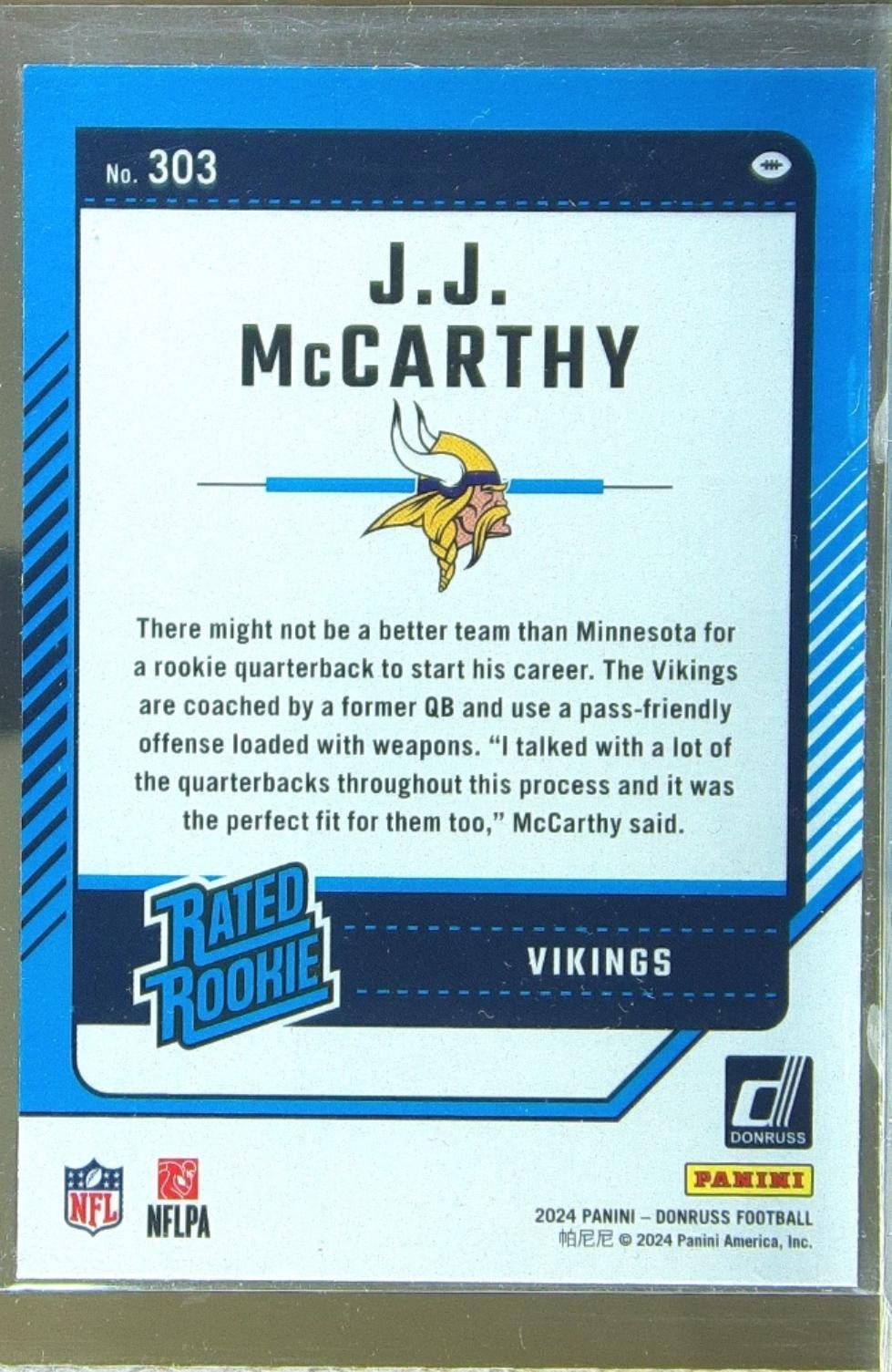 2024 Donruss J.J. McCarthy RC #303 Vikings