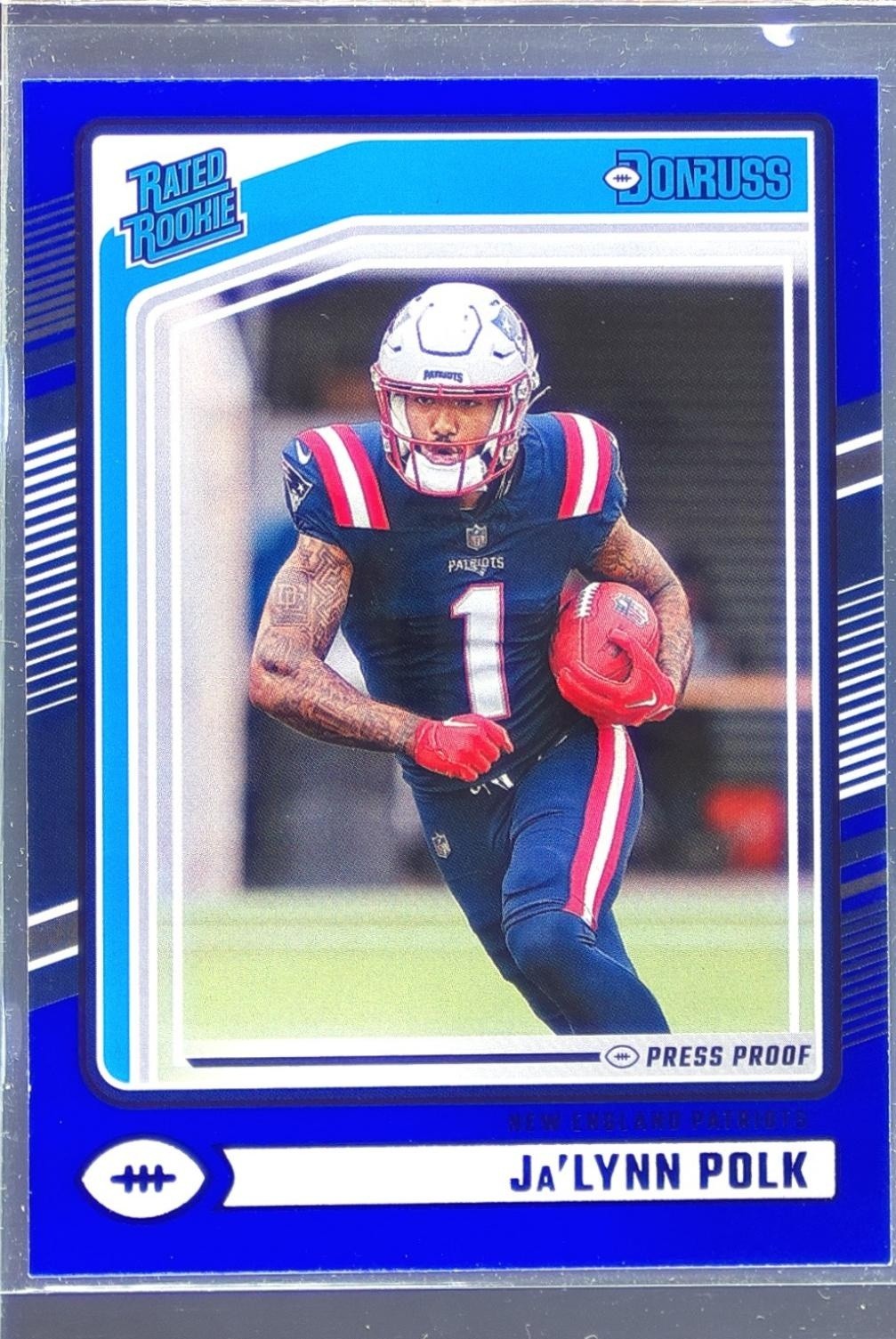 2024 Donruss Ja'Lynn Polk Press Proof Blue RC 373 Patriots