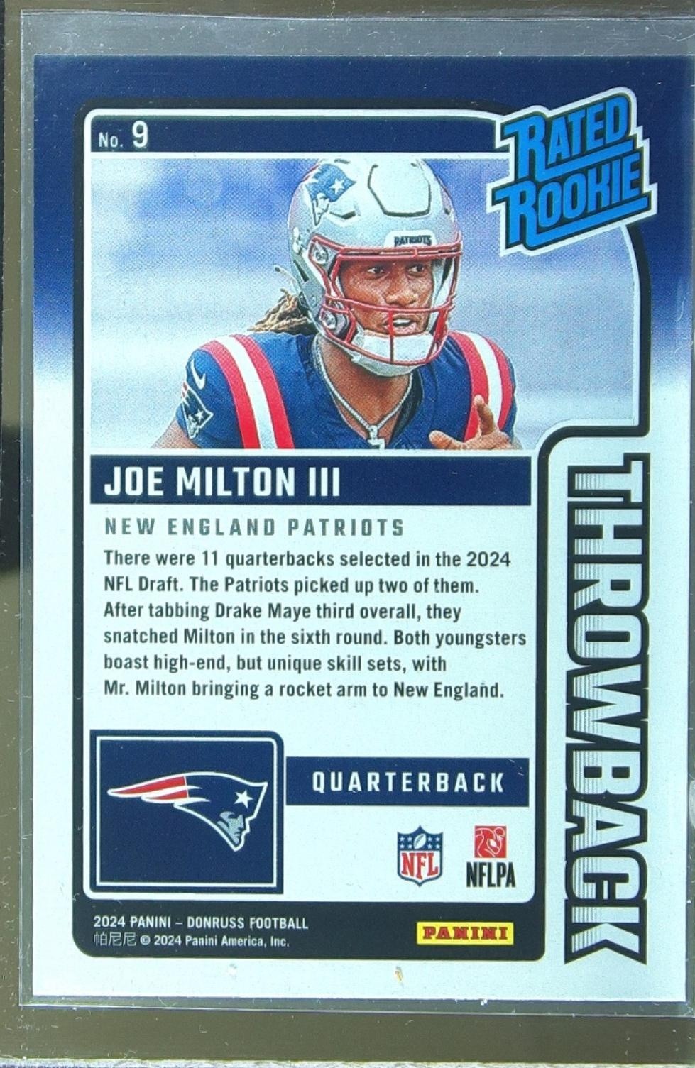 2024 Donruss Joe Milton III RC #9 Patriots Rated Rookies Throwback