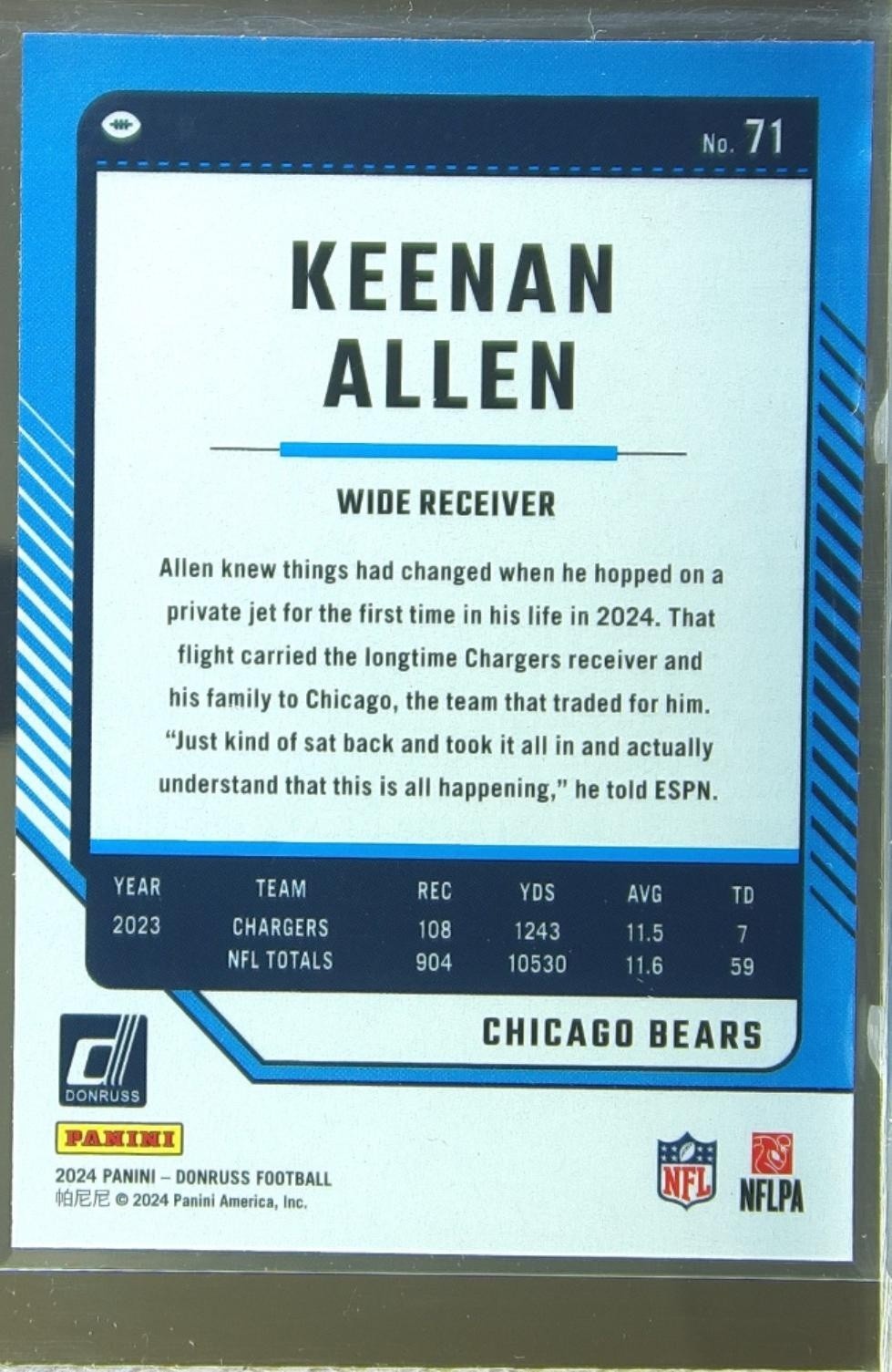 2024 Donruss Keenan Allen Press Proof Blue 71 Bears
