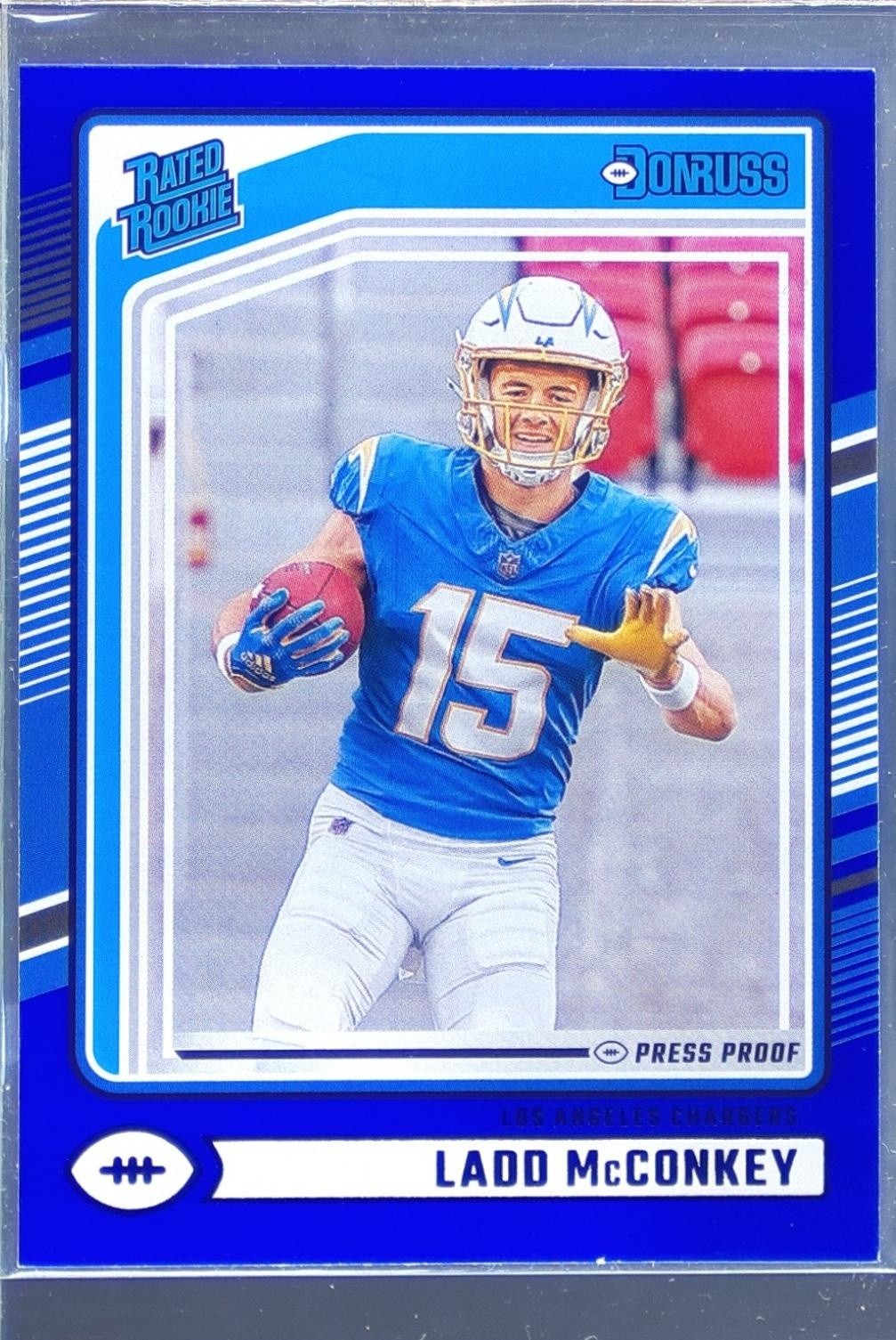2024 Donruss Ladd McConkey Press Proof Blue RC #328 Chargers