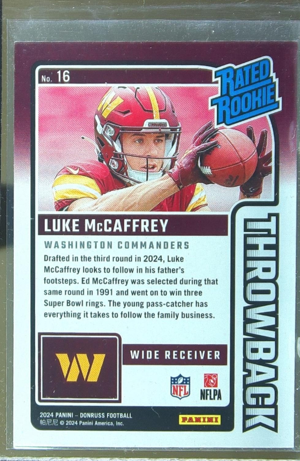 2024 Donruss Luke McCaffrey RC #16 Commanders Rated Rookies Throwback