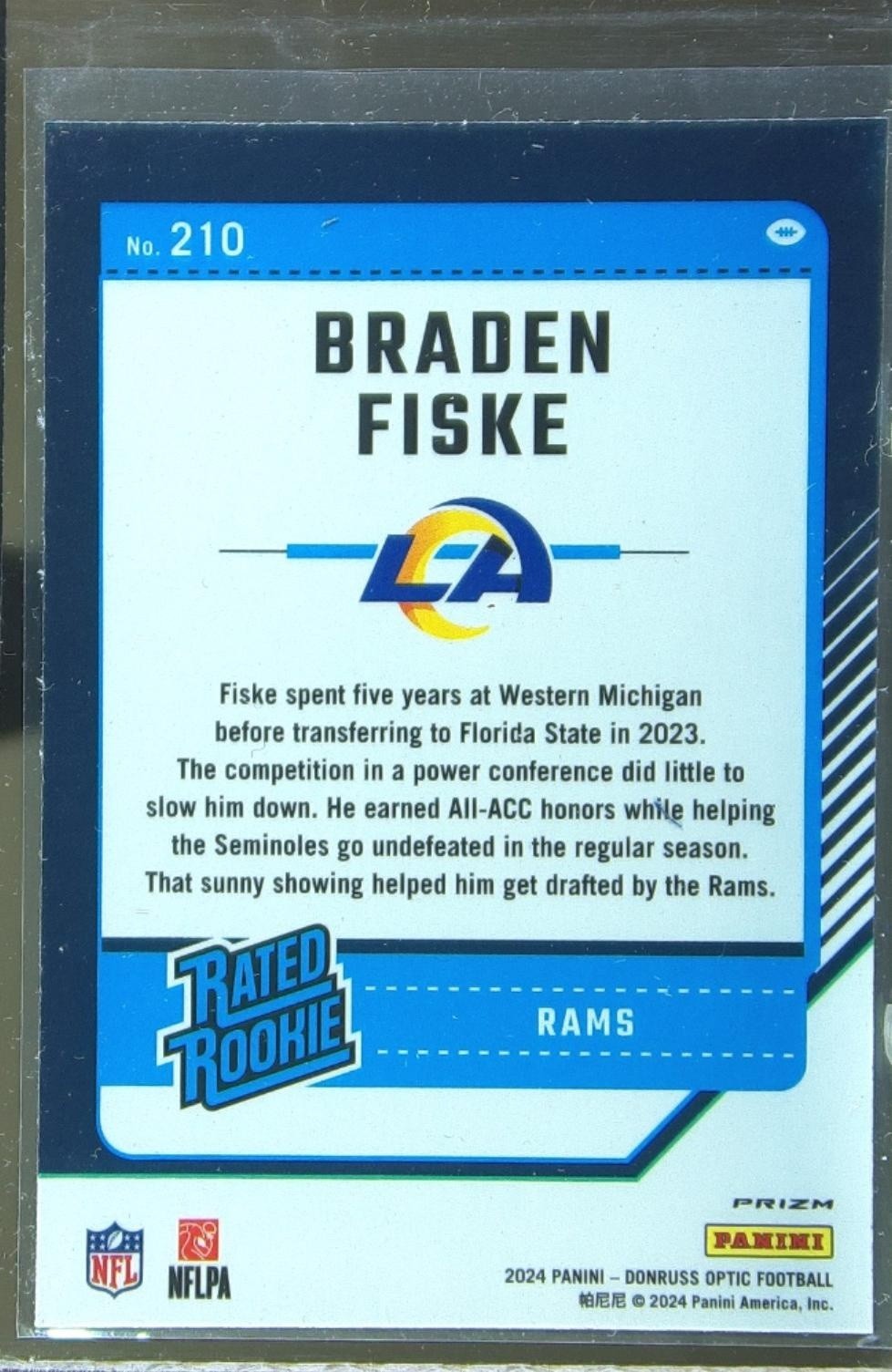 2024 Donruss Optic Braden Fiske Blue Hyper RC #210 Rams