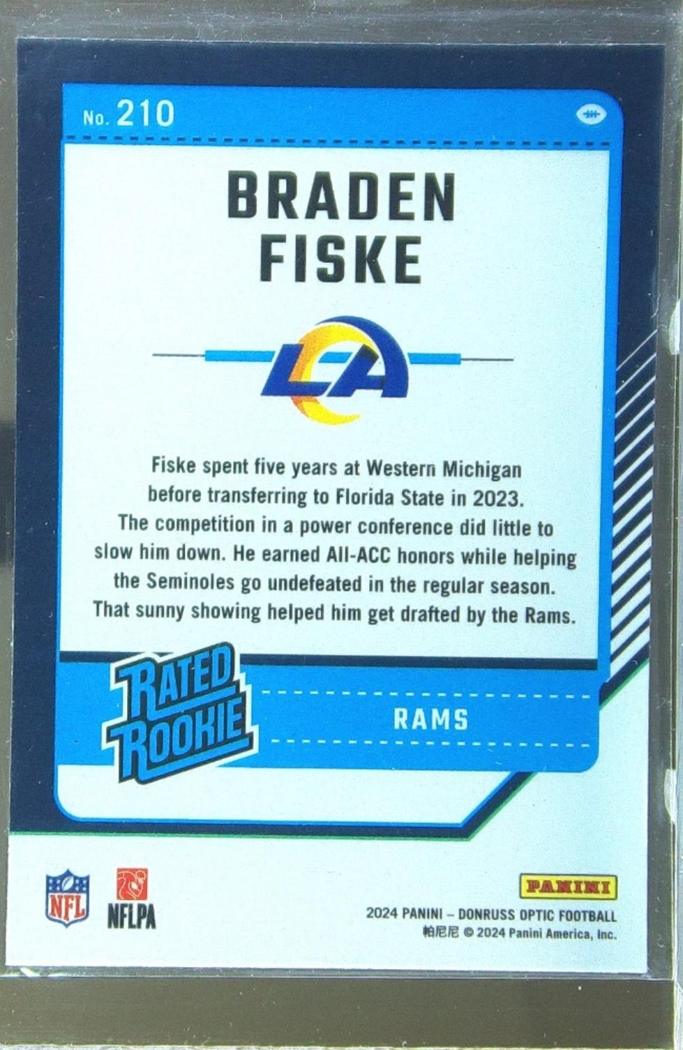 2024 Donruss Optic Braden Fiske RC #210 Rams