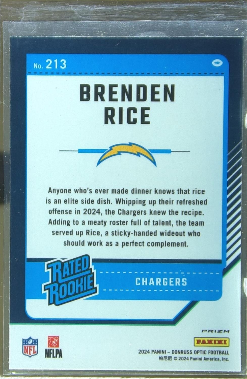 2024 Donruss Optic Brenden Rice Purple Shock RC #213 Chargers