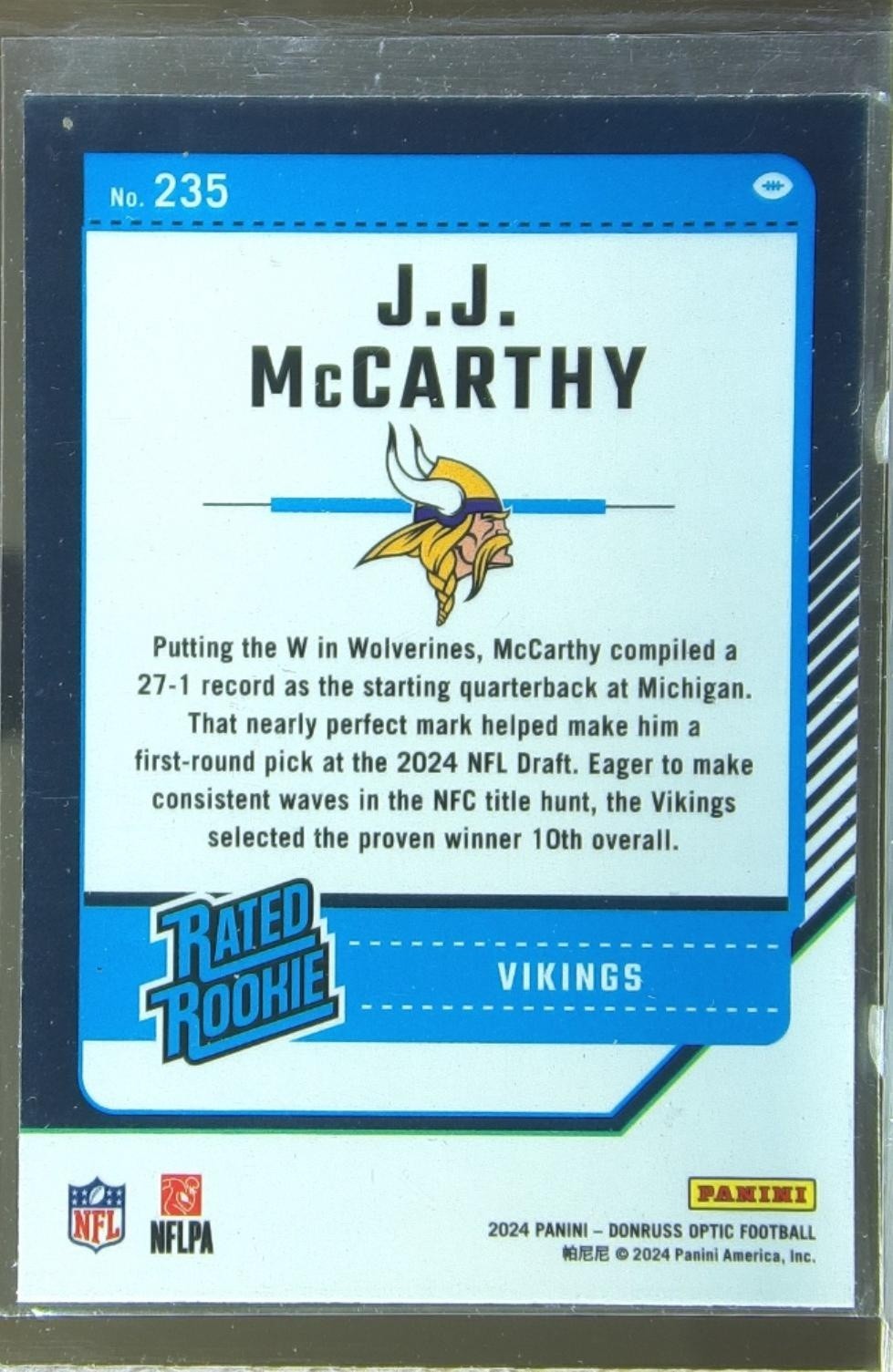 2024 Donruss Optic J.J. McCarthy RC #235 Vikings