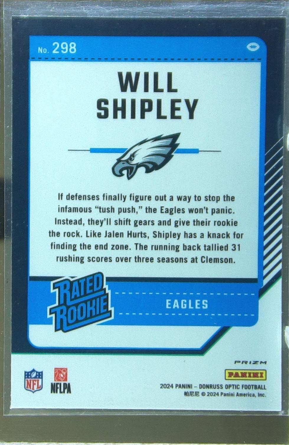 2024 Donruss Optic Will Shipley Purple Shock RC #298 Eagles