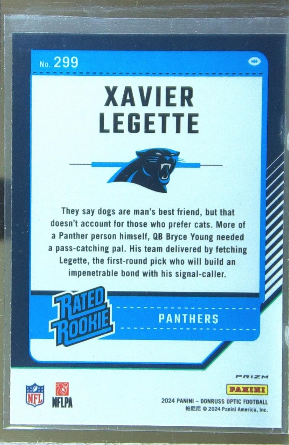 2024 Donruss Optic Xavier Legette Pink RC #299 Panthers