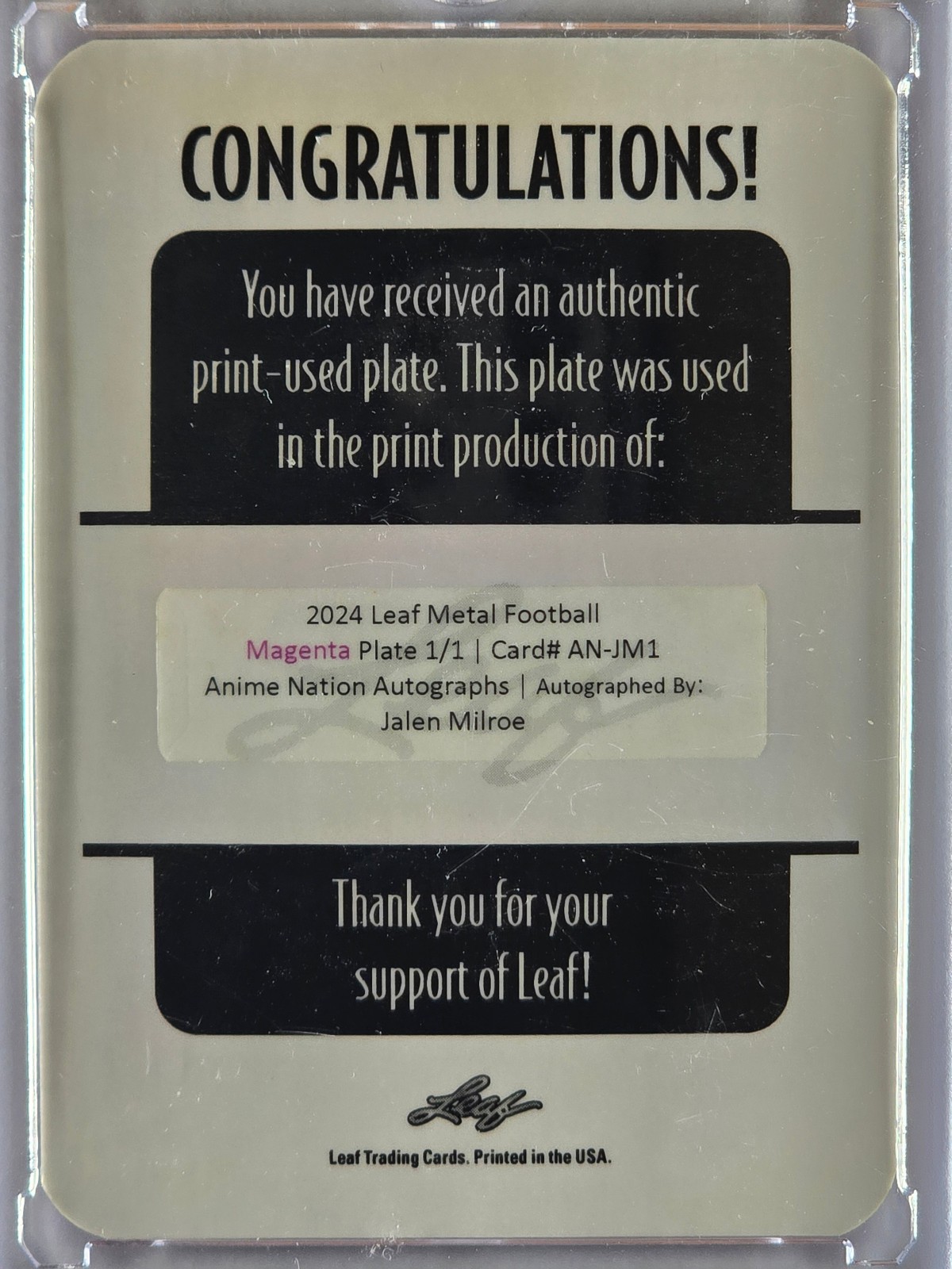 2024 Leaf Metal Jalen Milroe Magenta Printing Plate AU 1/1 AN-JM1